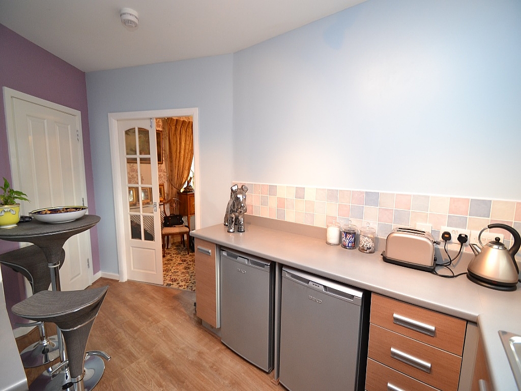 We are delighted to offer this 5 year old detached first floor apartment, which is displayed with quality fittings throughout, and has been much improved by the one owner from new. Comprising, ground floor entrance, alarm, stairs to landing hall, modern fitted breakfast kitchen with bar stools, Whirlpool stainless steel extractor over a 4 ring hob and built in electric oven, integrated auto-washer dryer, lounge with storage cupboard, double bedroom, loft access with drop down ladder and light, modern fitted bathroom suite in white with double shower facility over the bath, electric heating, Upvc dg, alarm, externally, drive and parking to the front, small garden frontage. There is a rear area which the vendor has lovingly created as a garden area, which can be explained upon viewing. Leasehold 155 years since 2008. £45 PER QTR FOR GROUND RENT,  £45 PER QTR FOR MAINTENANCE TO INCLUDE BI AND WINDOWS WASHED.  Stunning single person/couples property, within walking distance of the local shops and bus stops, plus Medical Centre just up the road. VIEWING ESSENTIAL.