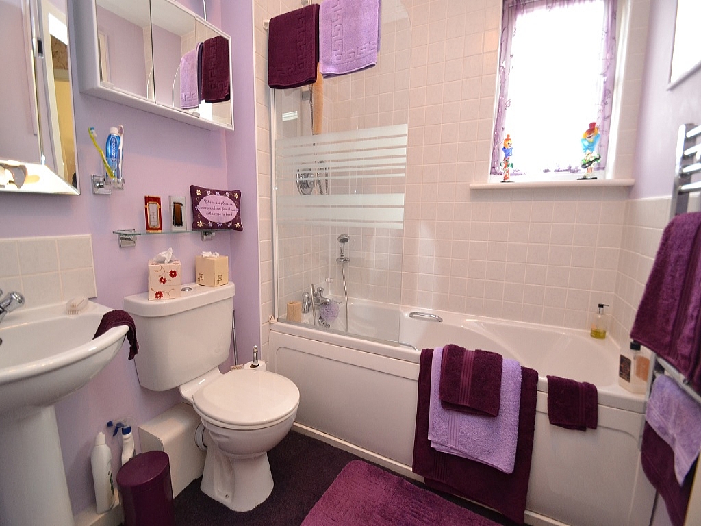 Bathroom: 6'9 x 6'4. Three piece suite in white, shower screen, chrome shower unit plus mixer tap, heated chrome towel rail, frosted Upvc dg window, extractor.