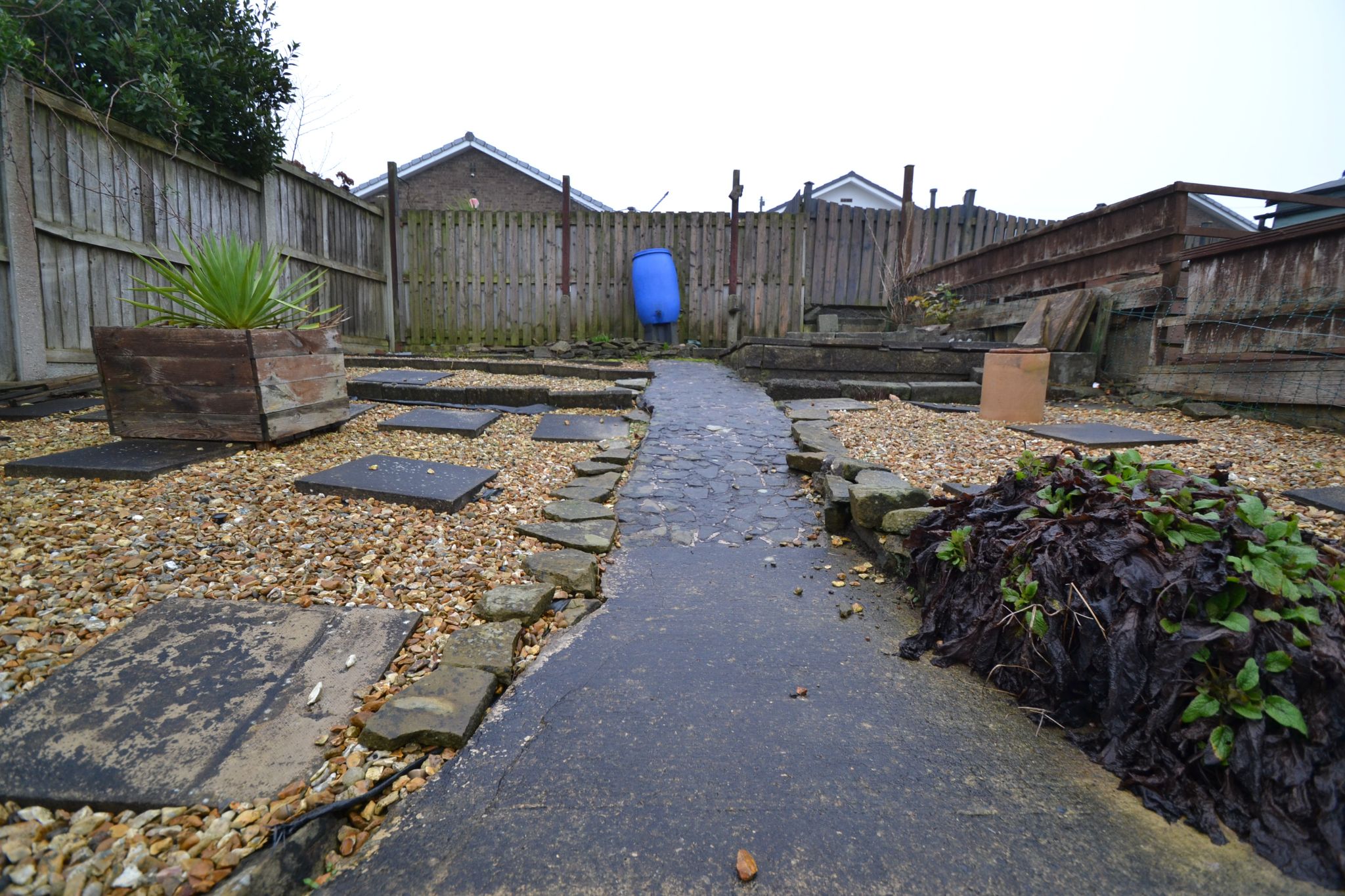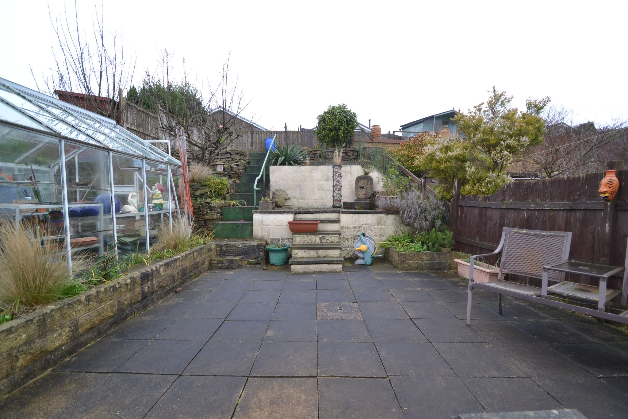 - Rear stepped garden with a greenhouse