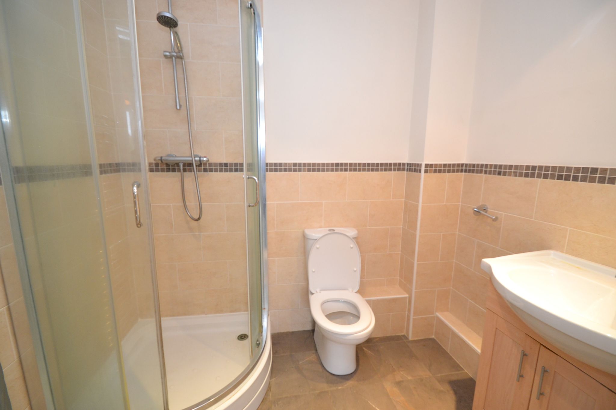 En-Suite: 2.22m x 1.60m (7'3 x 5'2). Wrap around shower cubicle with chrome thermostatically controlled shower unit, part tiled, wash basin on a vanity unit, wc, extractor, heated chrome towel rail, inset ceiling lights.