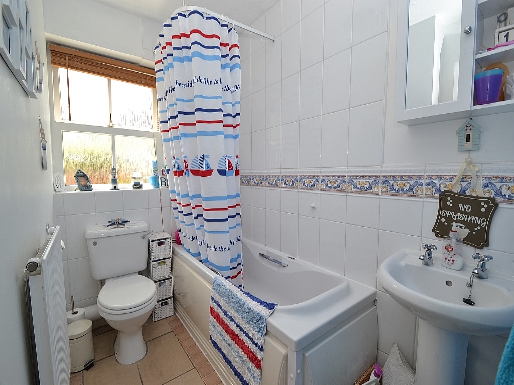 Bathroom: Three piece suite in white, shower rail & curtain, Triton shower over the bath, part tiled, extractor, electric shaving point, Upvc dg frosted window, tiled floor, ch radiator.