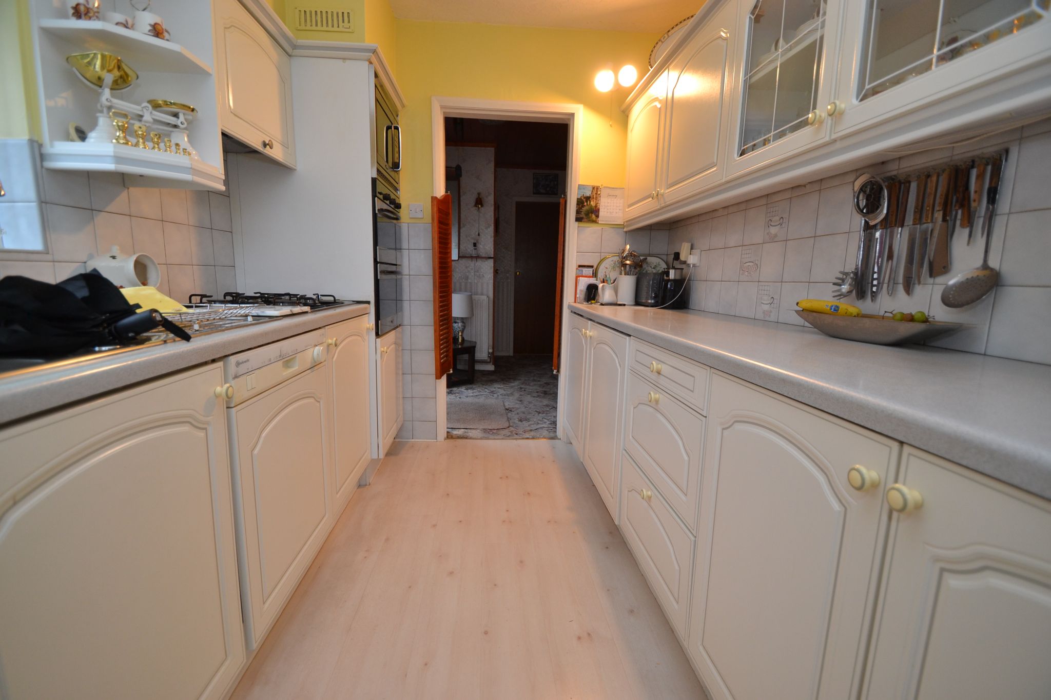 Kitchen: 3.39m x 2.24m (11'1 x 7'3). Range of wall & base units, work tops with tiling above, 4 ring stainless steel gas hob, extractor and light over, built in double electric stainless steel oven by Baumatic, built in microwave by Baumatic, plumbed for an auto-washer which will remain, integrated dishwasher, integrated fridge and freezer, useful drawer with a pull out work top, two dg windows to front and side with fitted blinds, double radiator.