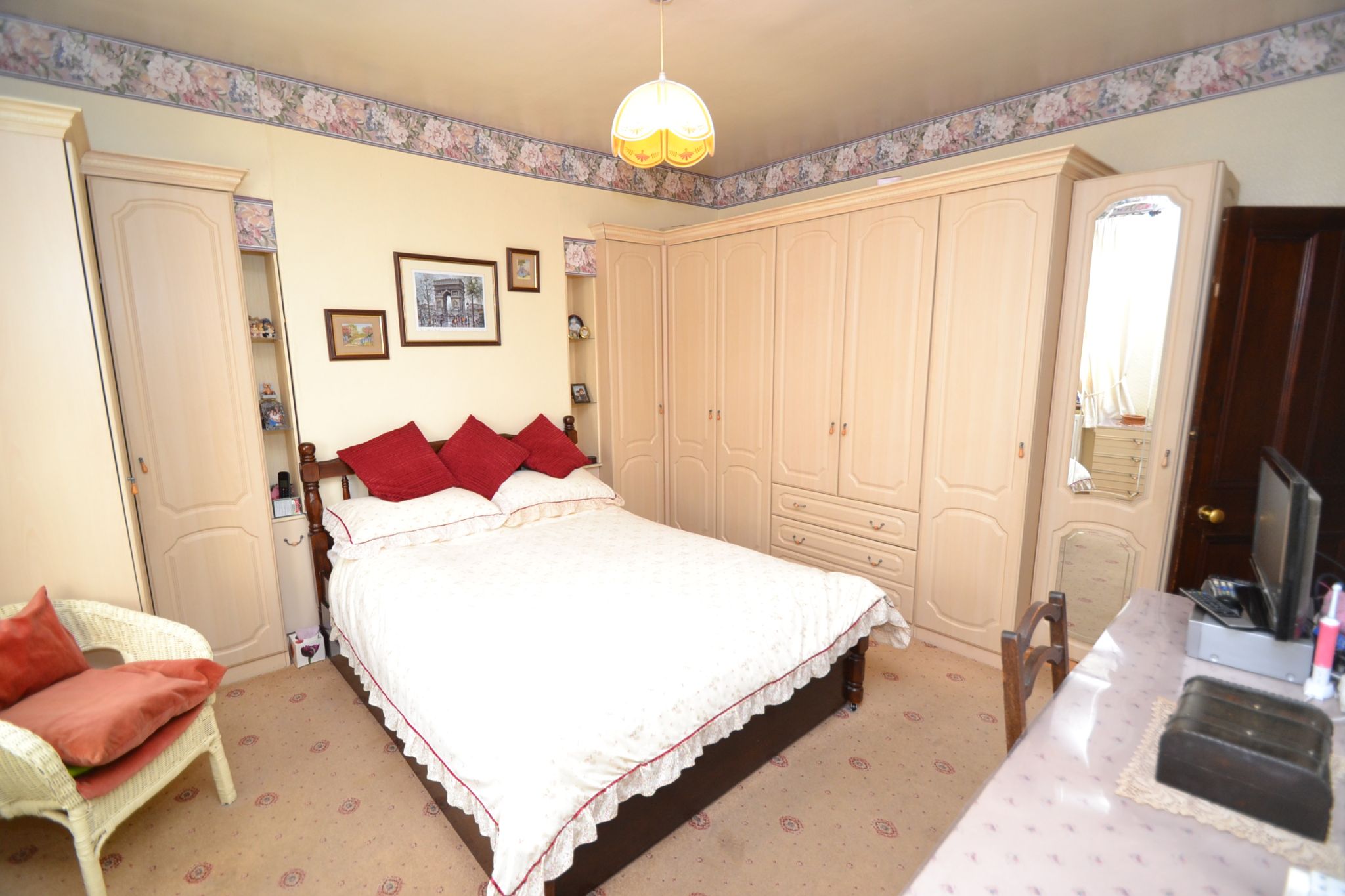 Bedroom1: 4.80m x 4.05m (15'9 x 13'3). Wood dg window to front, radiator, extensive fitted bedroom furniture, additional storage cupboard.