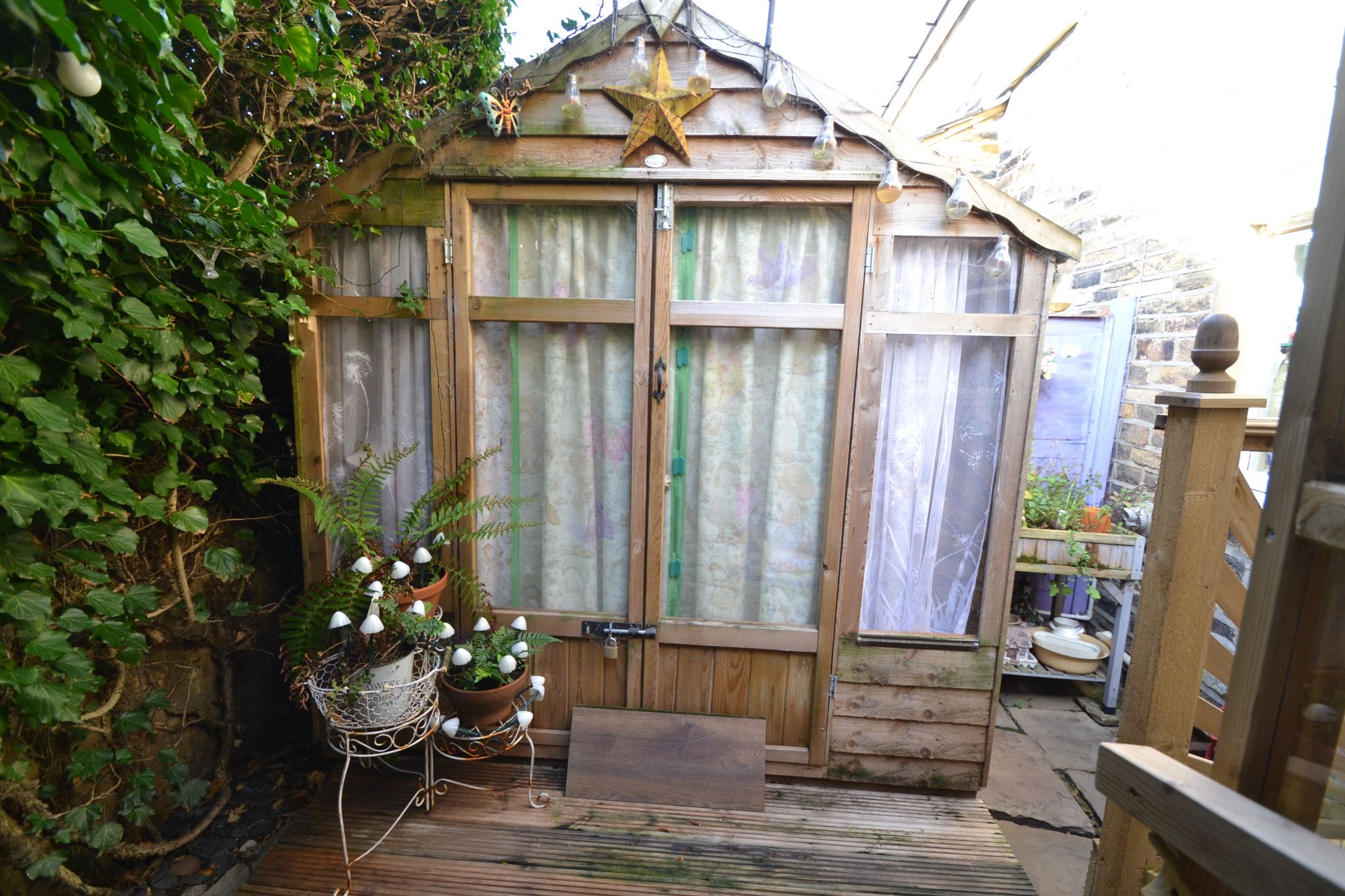 Externally: There are gardens to the front and side of the property. Summer house to remain, outside tap.