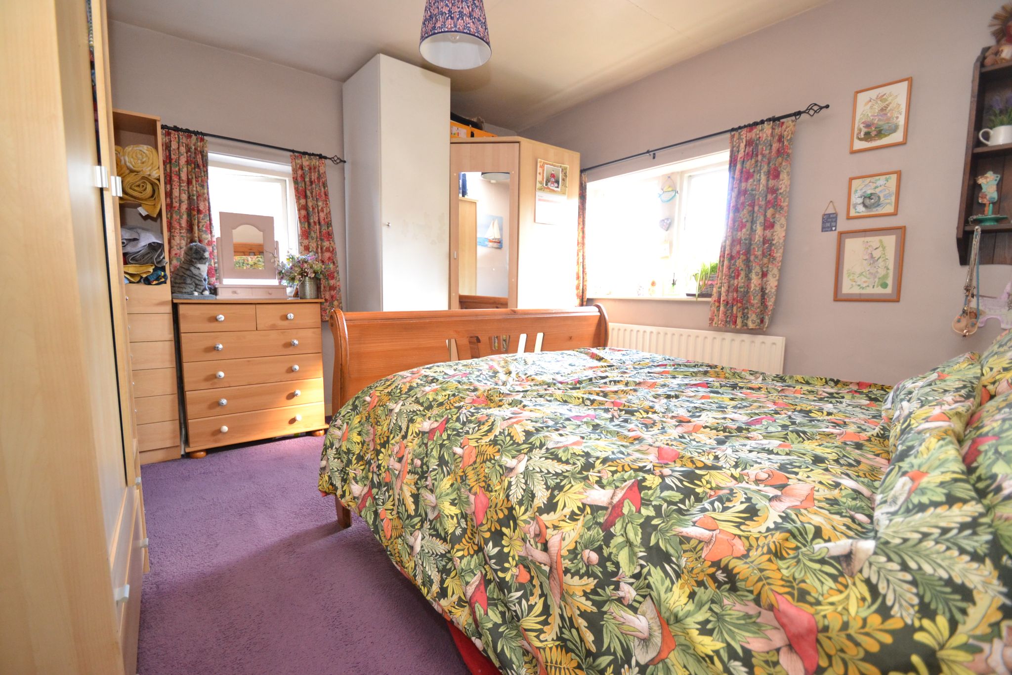 Bedroom 1: 12' 7" x 11' 3" ( 3.84m x 3.43m ). Radiator, windows to the front and side elevations, built in fitted wardrobes and airing cupboard.