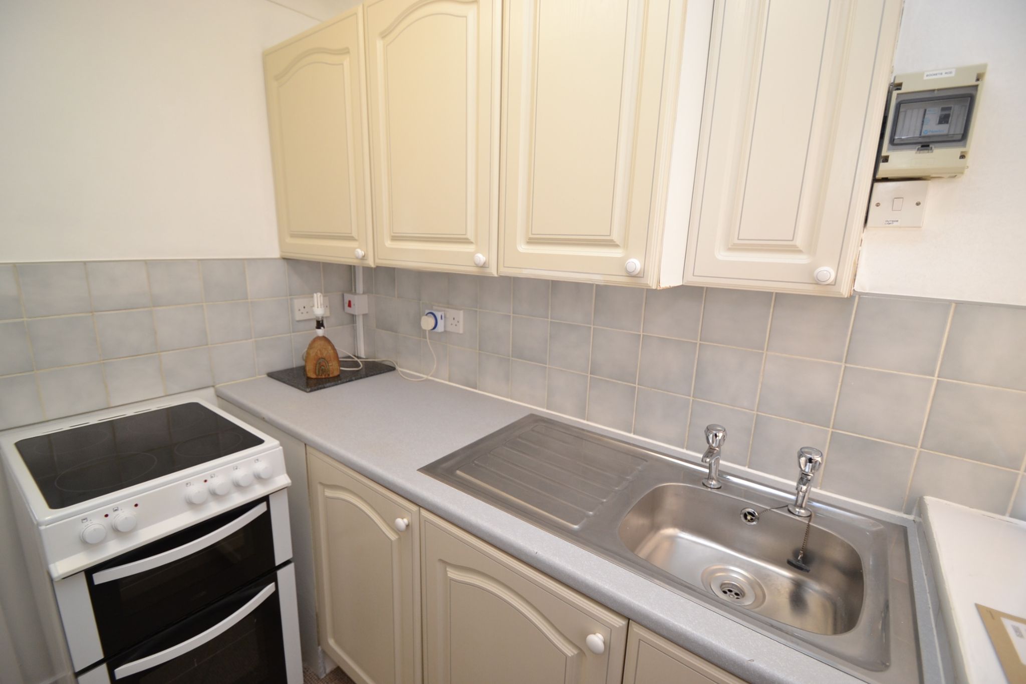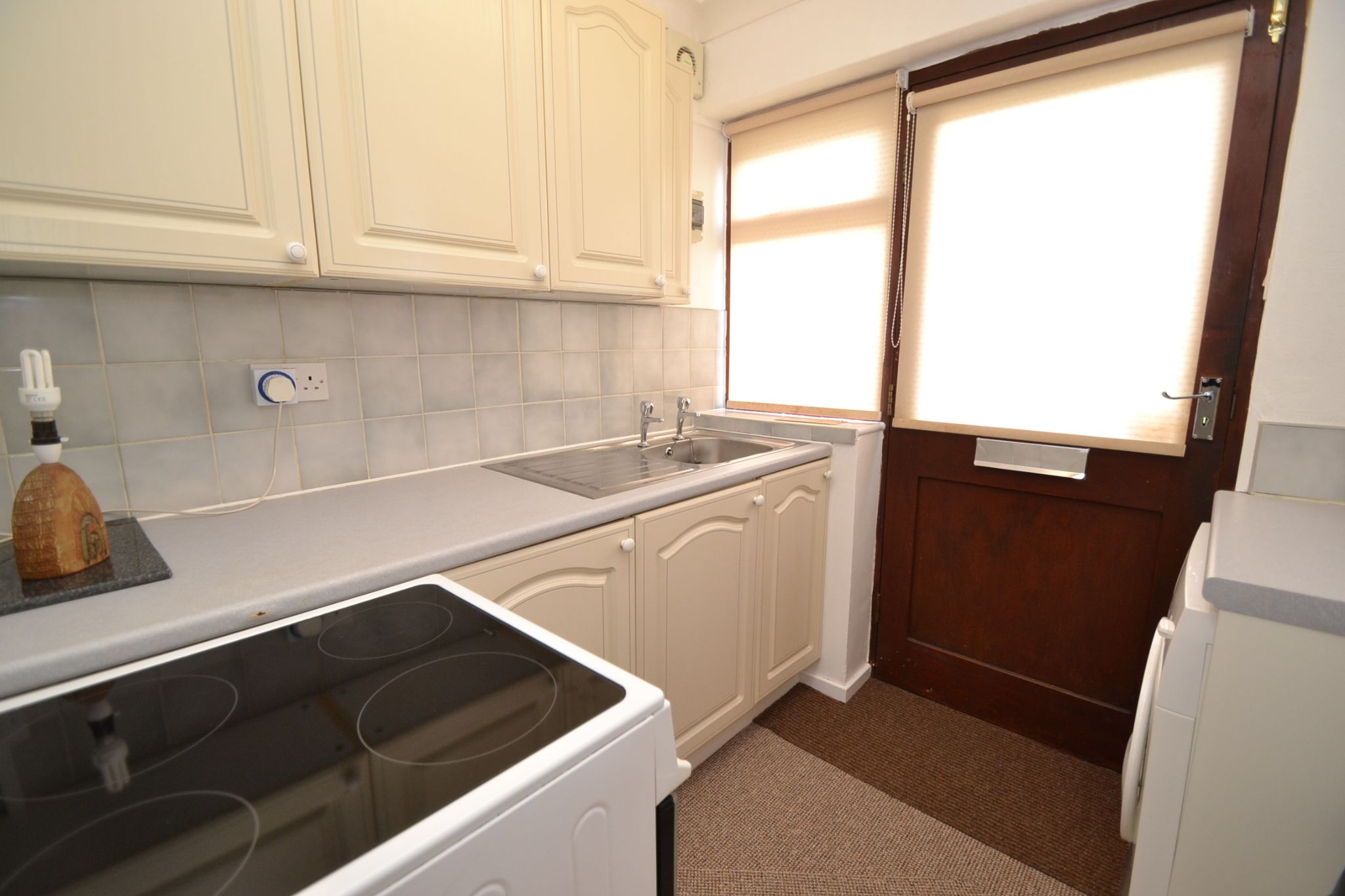 Kitchen: 2.11m x 2.01m (6'9 x 6'5). Range of wall & base units, work tops with tiling above, stainless steel sink, electric cooker, part glazed and rear dg wood window, plumbed for an auto-washer, radiator.