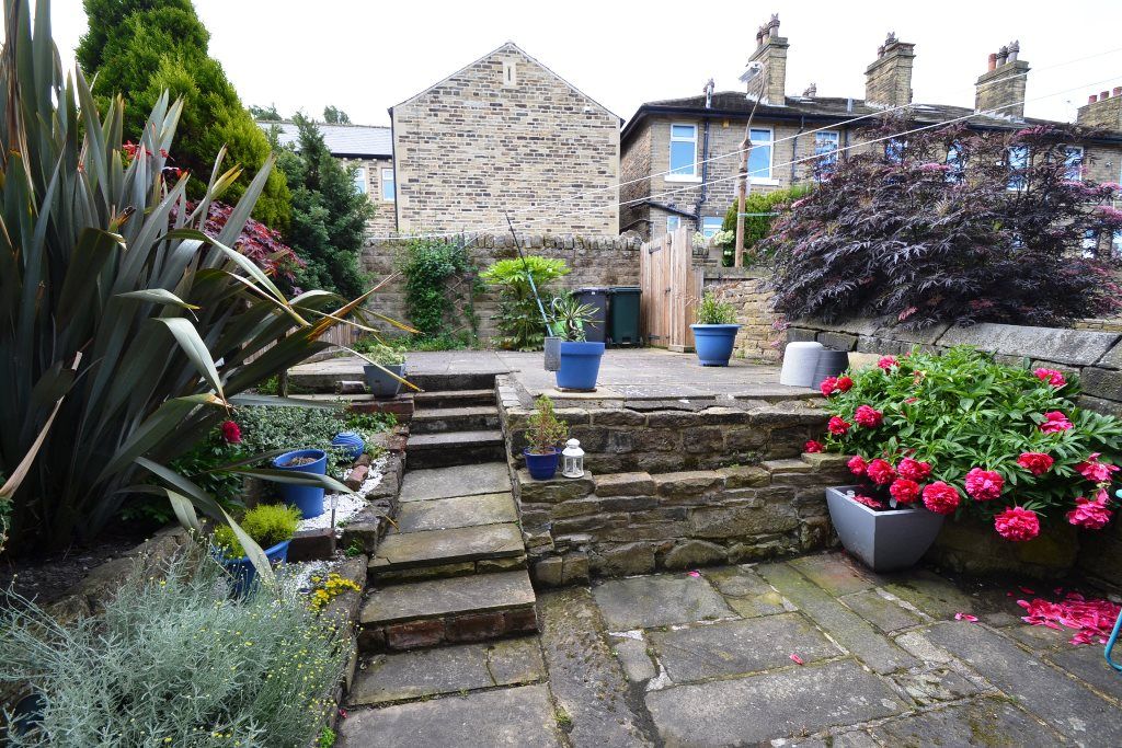 Externally: To the front is a flagged small garden with steps and railing support to the front. To the rear is an enclosed flagged and tiered south facing garden, residents access.