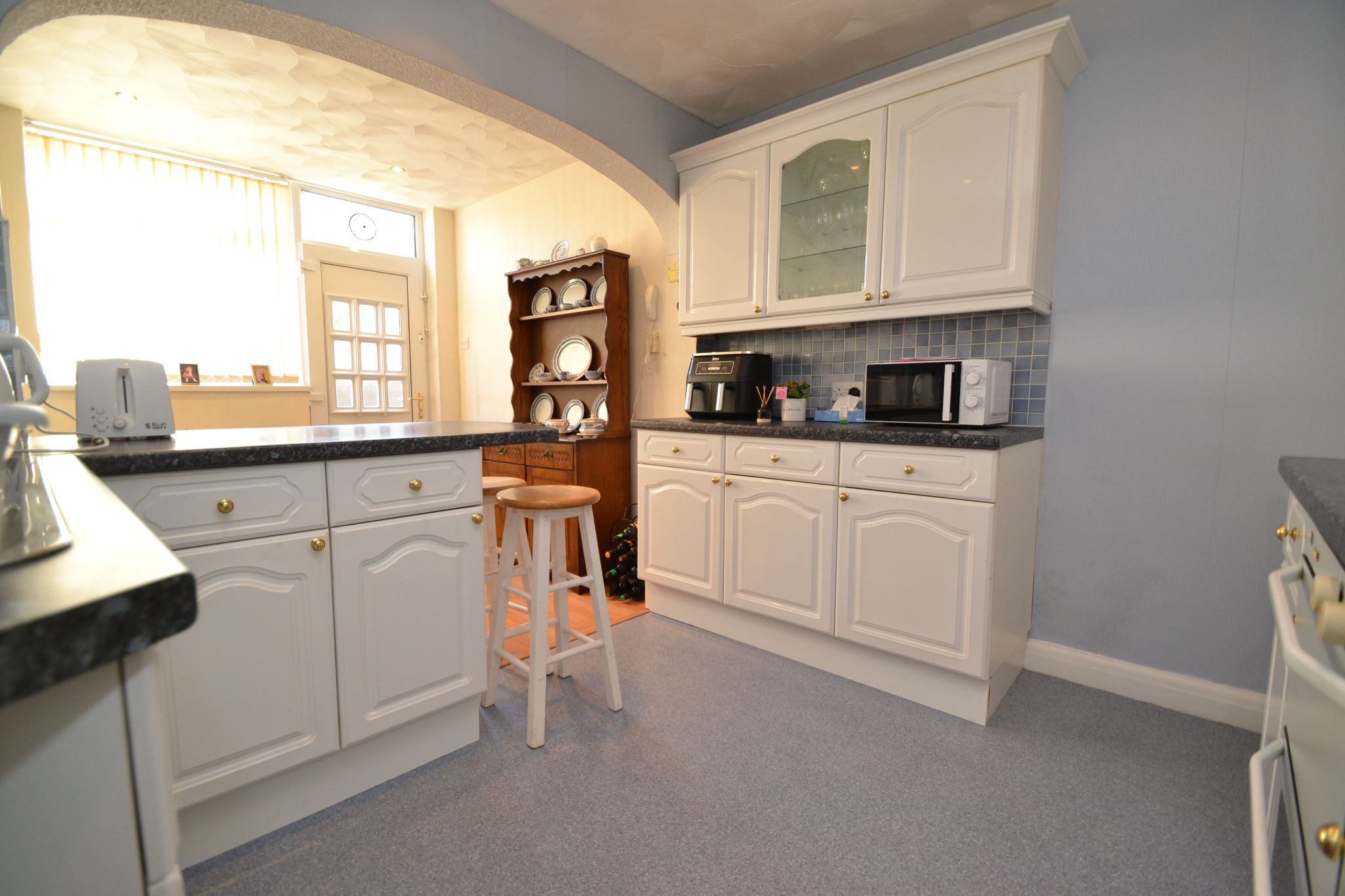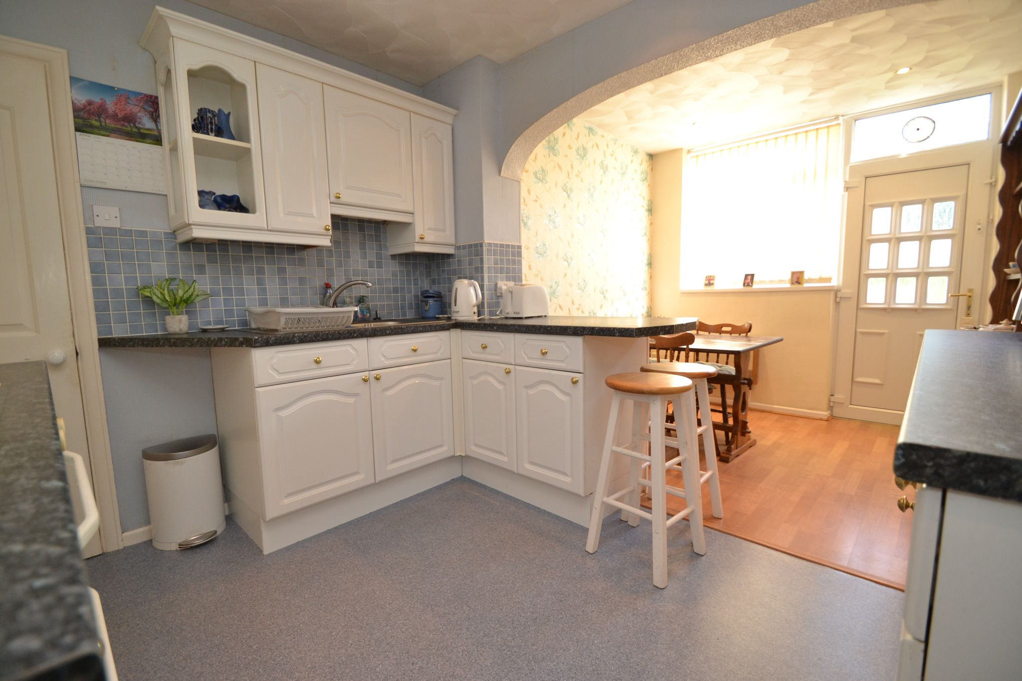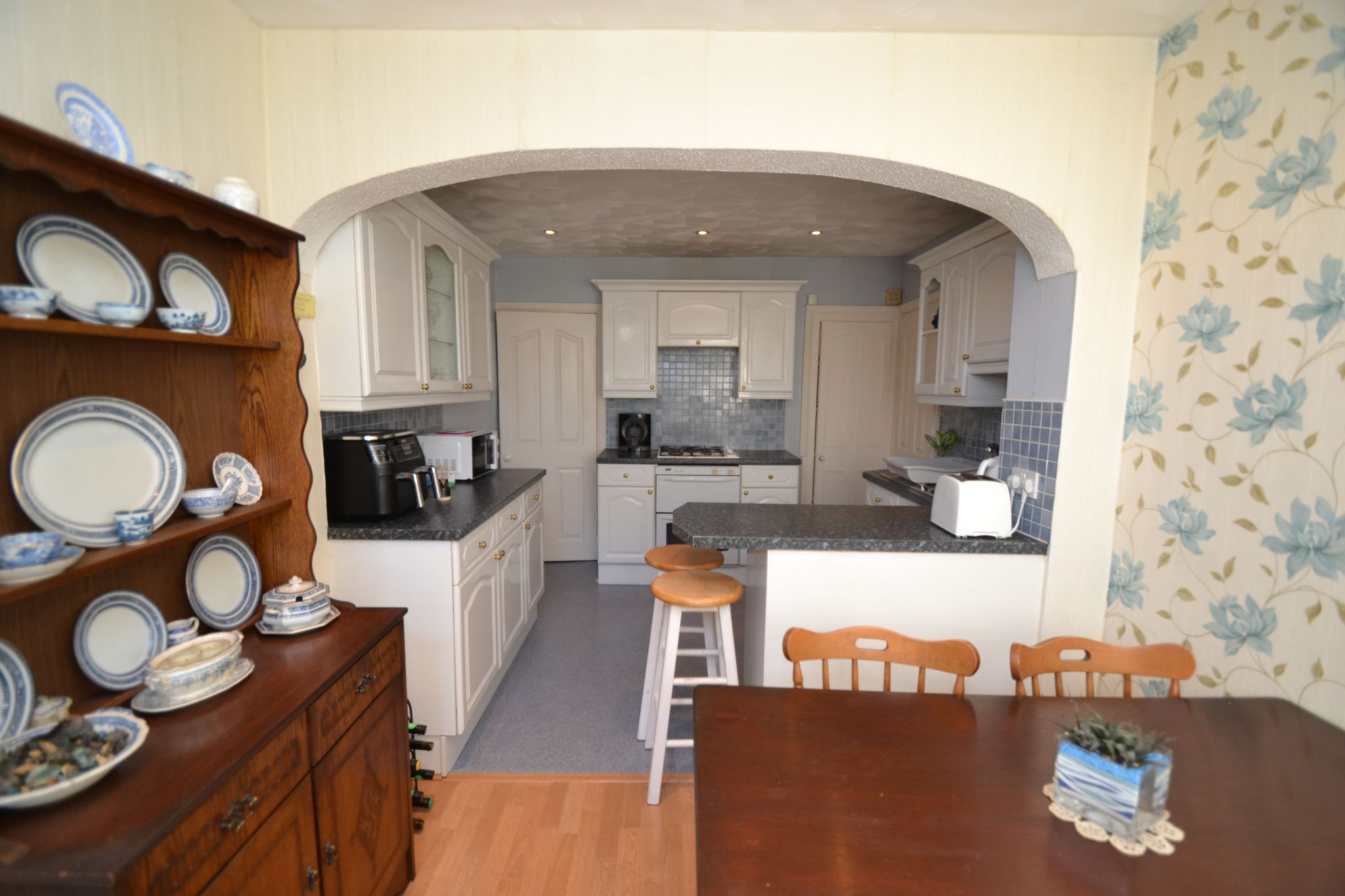 Kitchen Diner: 5.08m x 2.59m (16'6 x 8'4). Range of wall & base units in white, work tops with tiling above, stainless steel sink with a mixer tap, extractor and light over a 4 ring gas hob, built in electric oven and grill, breakfast bar, internal door leads to an under stairs useful utility area, plumbed for an auto-washer, space for a tall boy fridge freezer, Worcester Bosch condensing combi-boiler. In the dining area is a space for a table and chairs, rear entrance door, gas wall heater, Upvc dg to rear.