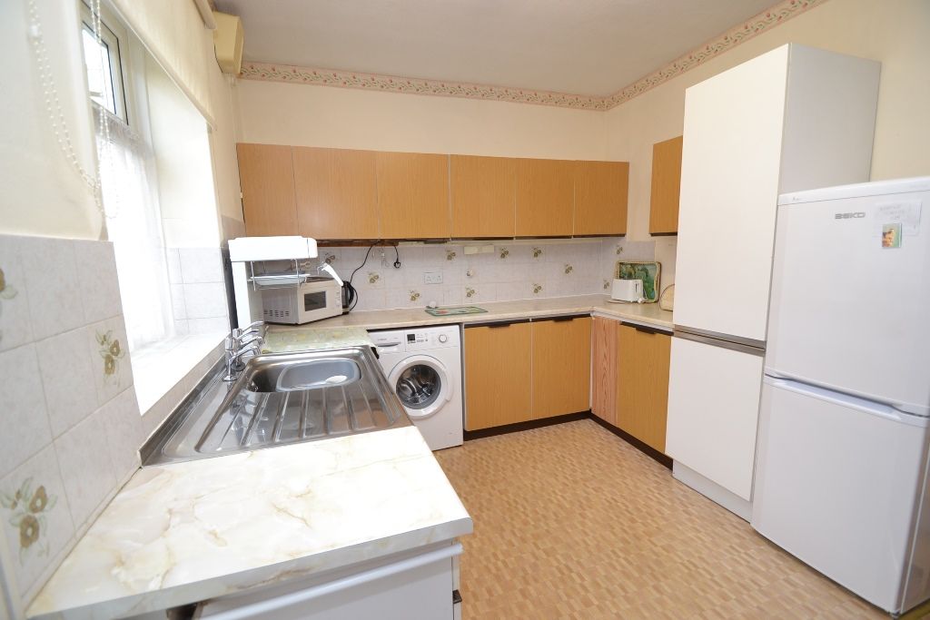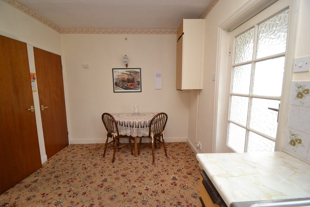 Kitchen Dining Room: 4.84m x 2.79m (15'10 x 9'1). Range of wall & base units work tops with tiling above, stainless steel sink, plumbed for an auto-washer, piped for a gas cooker, space for a tall boy fridge freezer, Upvc dg window to rear, extractor to wall. The dining area has space for a table and chairs, under stairs storage, rear door, rear porch.
