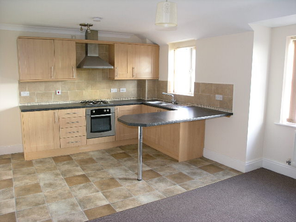 open plan living/dining area/kitchen. Fitted kitchen with integral appliances.