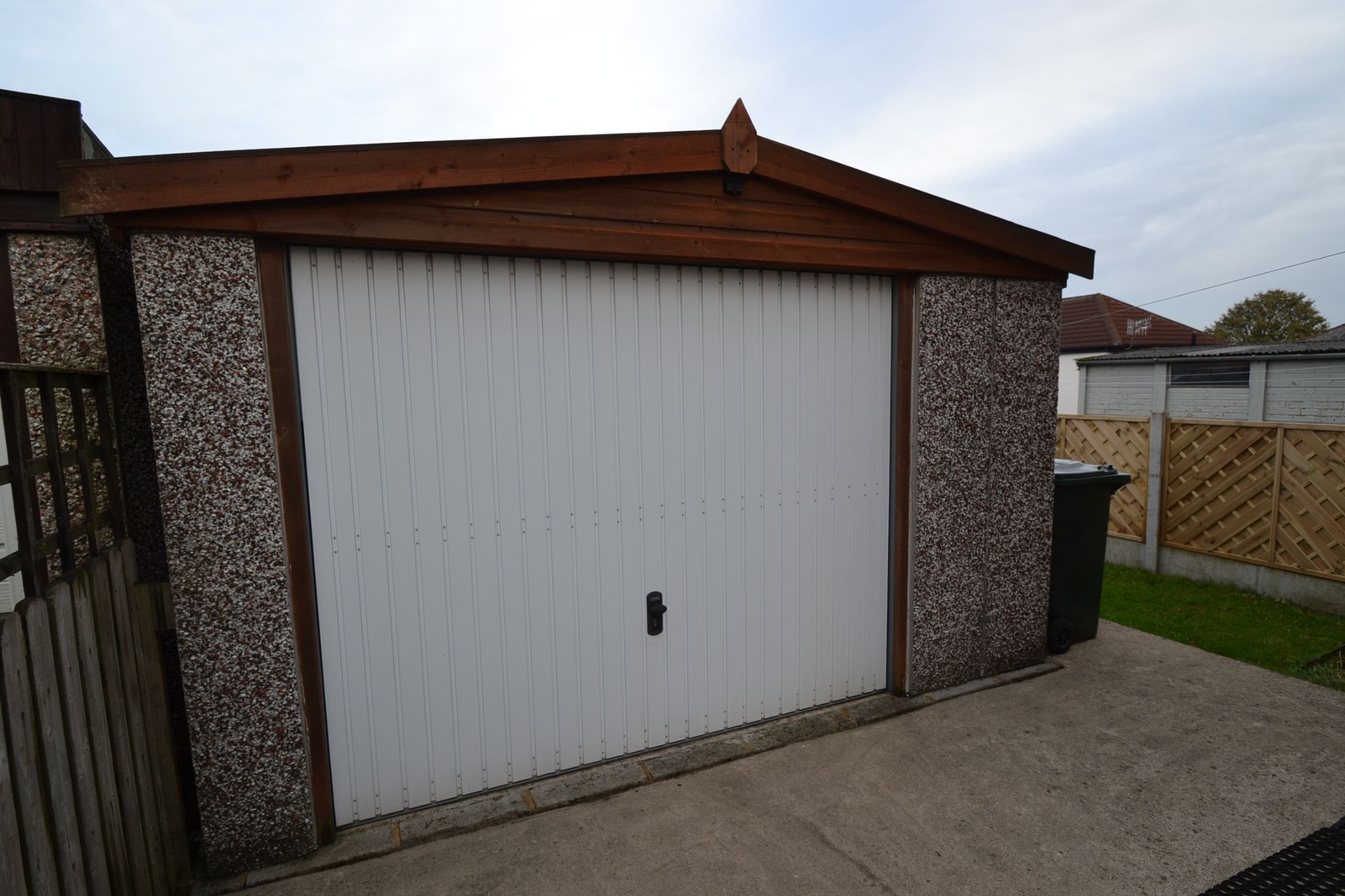 Externally: To the front is walling with double wood gates leading to the concrete drive and front lawned garden, side under house storage, larger than average detached garage with plenty of light & power, up and over door and side door, rear water tap, lawned garden.