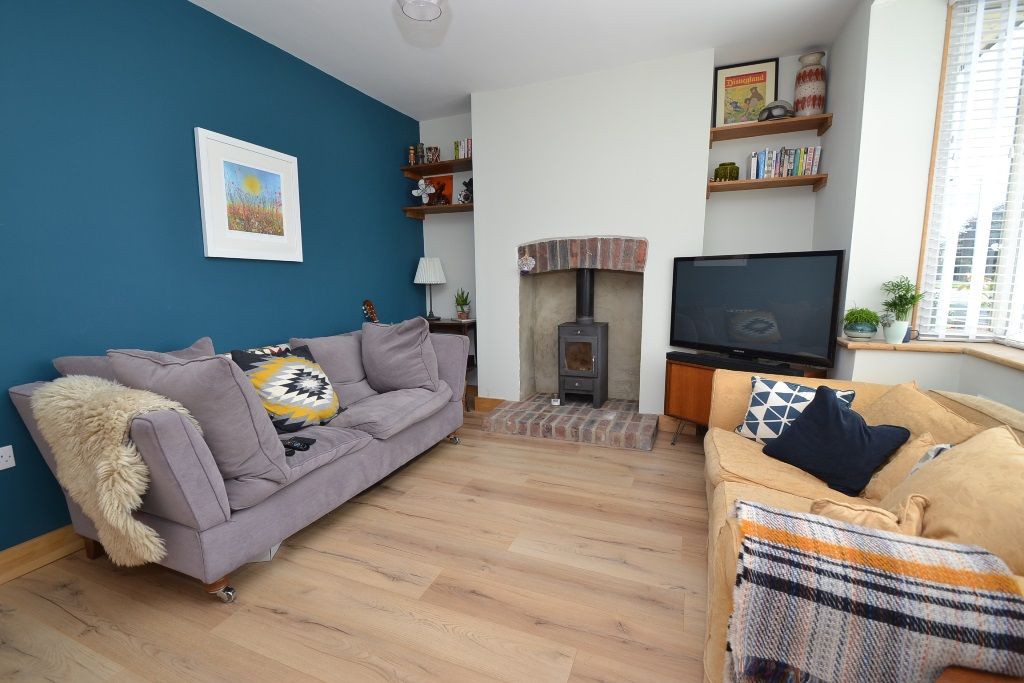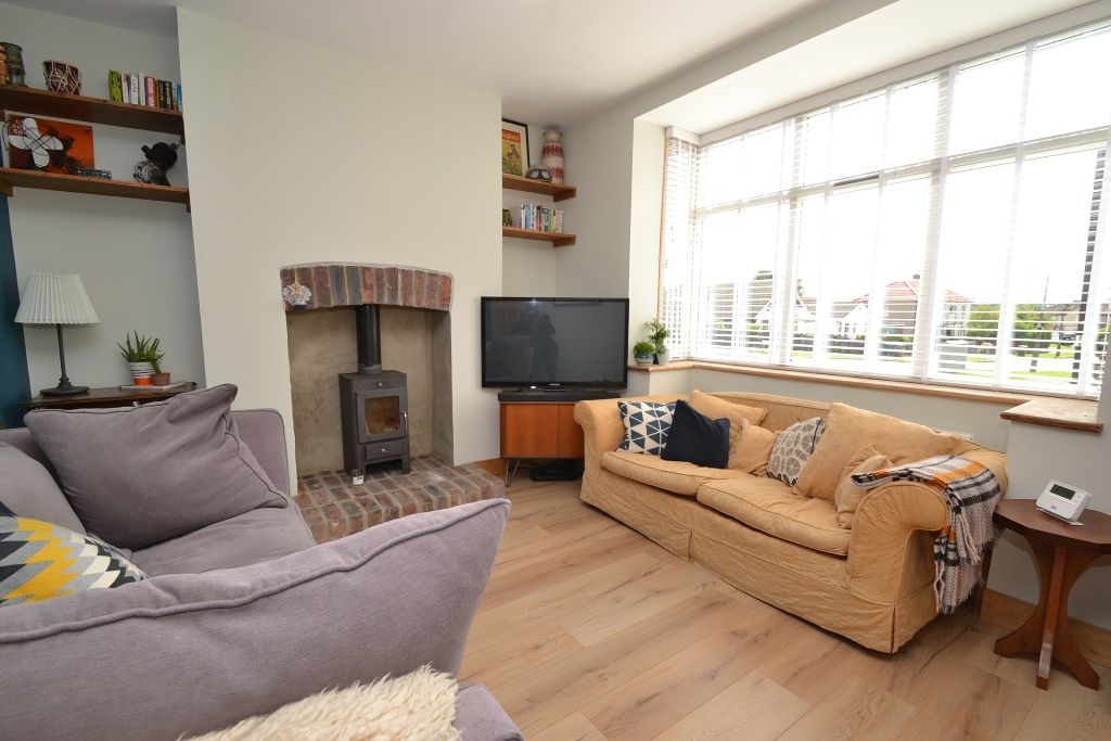 Lounge: 4.22m x 3.73m (13'10 x 12'2). Upvc dg bay window to front with fitted blind, ch radiator, feature fireplace with brick lintel and hearth along with a multi-fuel stove, quality plank effect laminate flooring.
