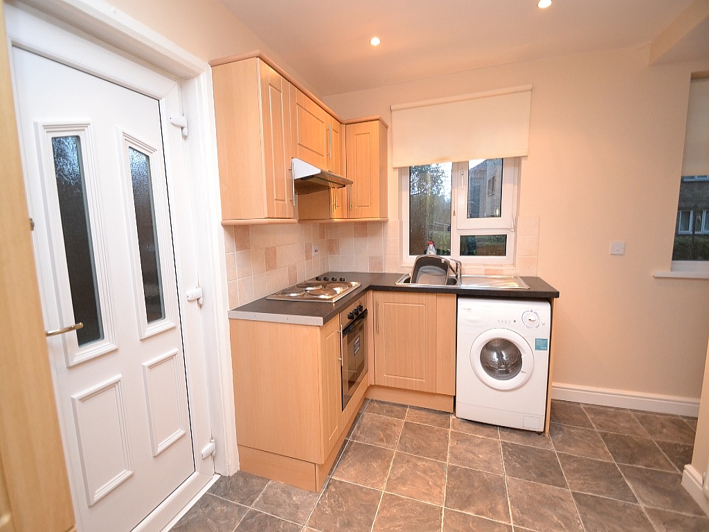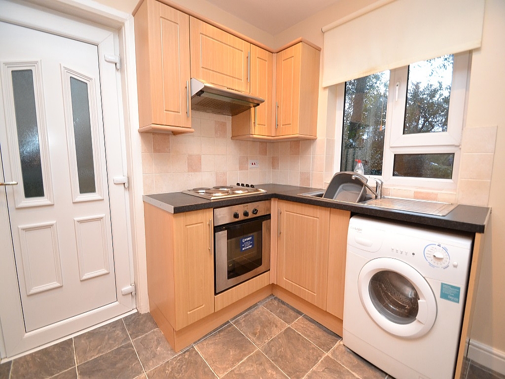 Kitchen Dining: 13'10 x 8'7. Range of wall & base units in beech with stainless steel T bar handles, work tops with tiling above, two Upvc dg windows to rear, stainless steel sink with mixer tap, plumbed for an auto-washer, stainless steel extractor over a 4 ring electric hob and built in electric stainless steel oven, side Upvc door, ch radiator, Vokera condensing boiler in wall unit, Upvc dg frosted window to front, inset ceiling lighting, under stairs storage cupboard.