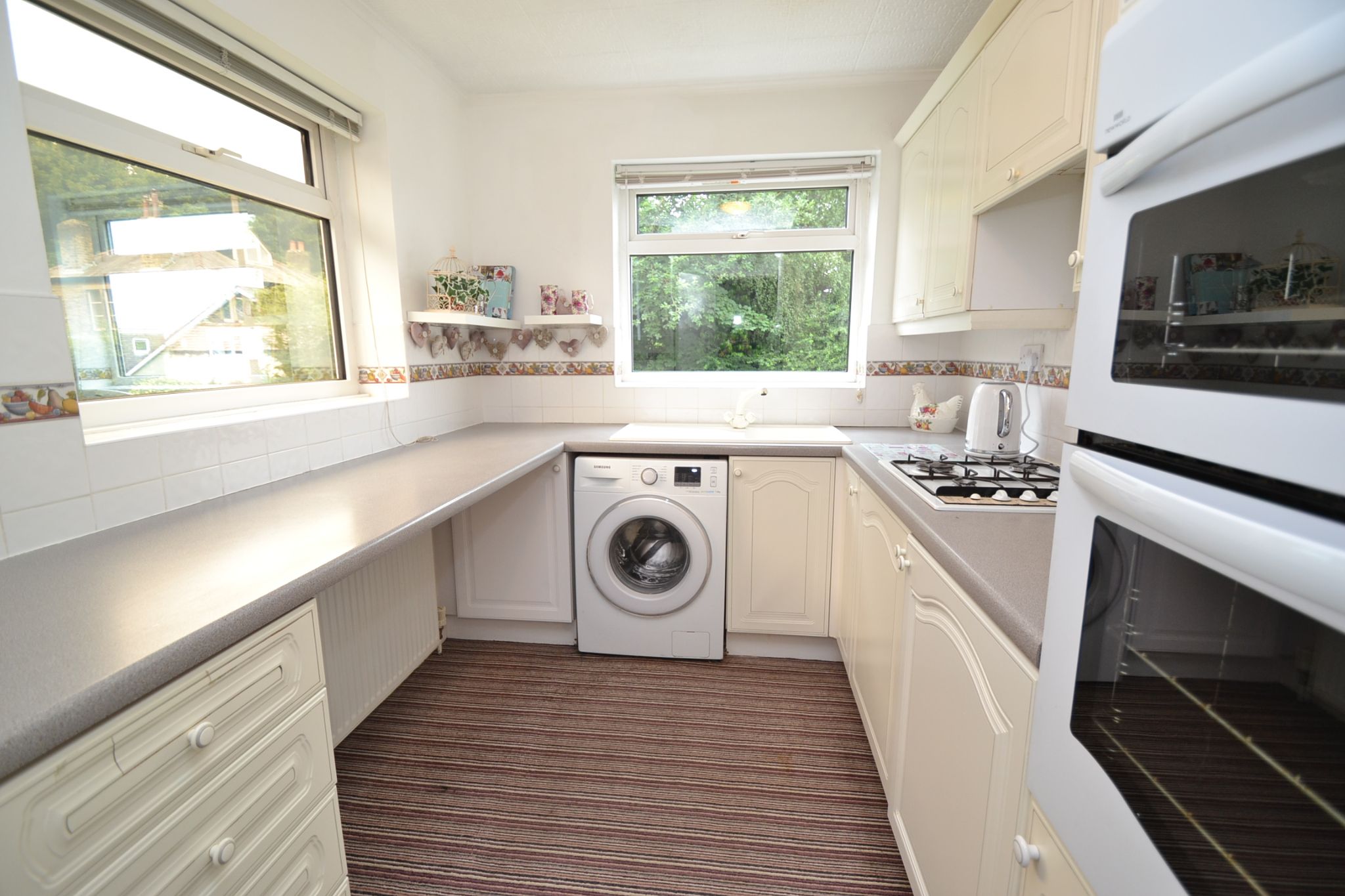 Kitchen: 3.31m x 2.26m (10'8 x 7'4). Range of wall & base units in white with grey trim, work tops with tiling above, extractor and light over a 4 ring Parkinson Cowan gas hob, built in New World gas oven and grill, plumbed for an auto-washer, sink with a mixer tap, radiator, pantry cupboard houses the utility meters and alarm panel, Upvc dg window to front & side elevations.