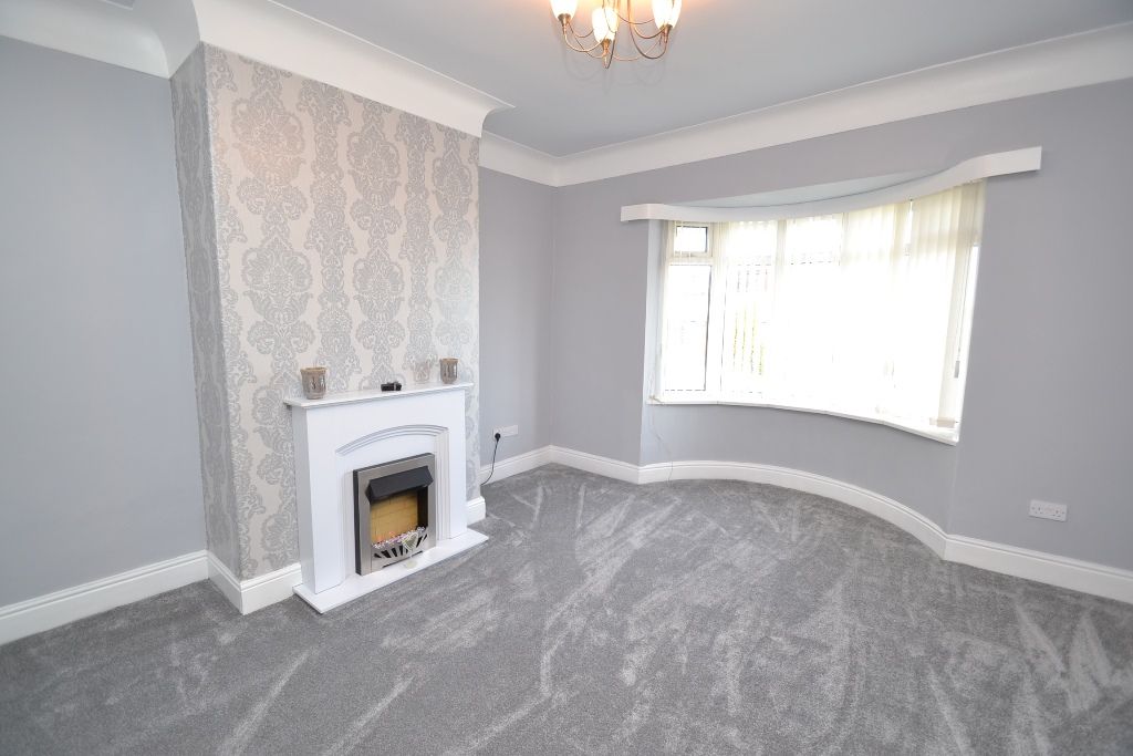 Lounge: 4.90m x 4.89m (16'0 x 16'0). Upvc dg bay window with fitted blind, ch radiator, fireplace feature with electric fire, coving.