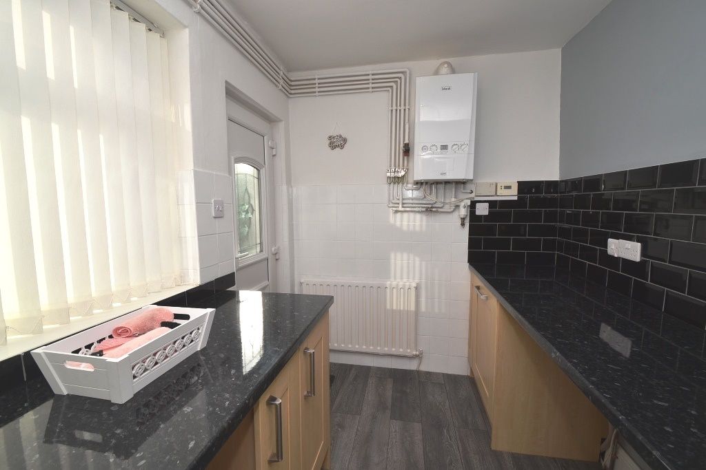 Utility Room: 2.43m x 2.04m (8'0 x 6'8). Range of base units and work tops, plumbed for an auto-washer, integrated dishwasher, ch radiator, newly installed Ideal Logic C24 condensing boiler, side Upvc dg window and entrance door, plank effect laminate flooring.