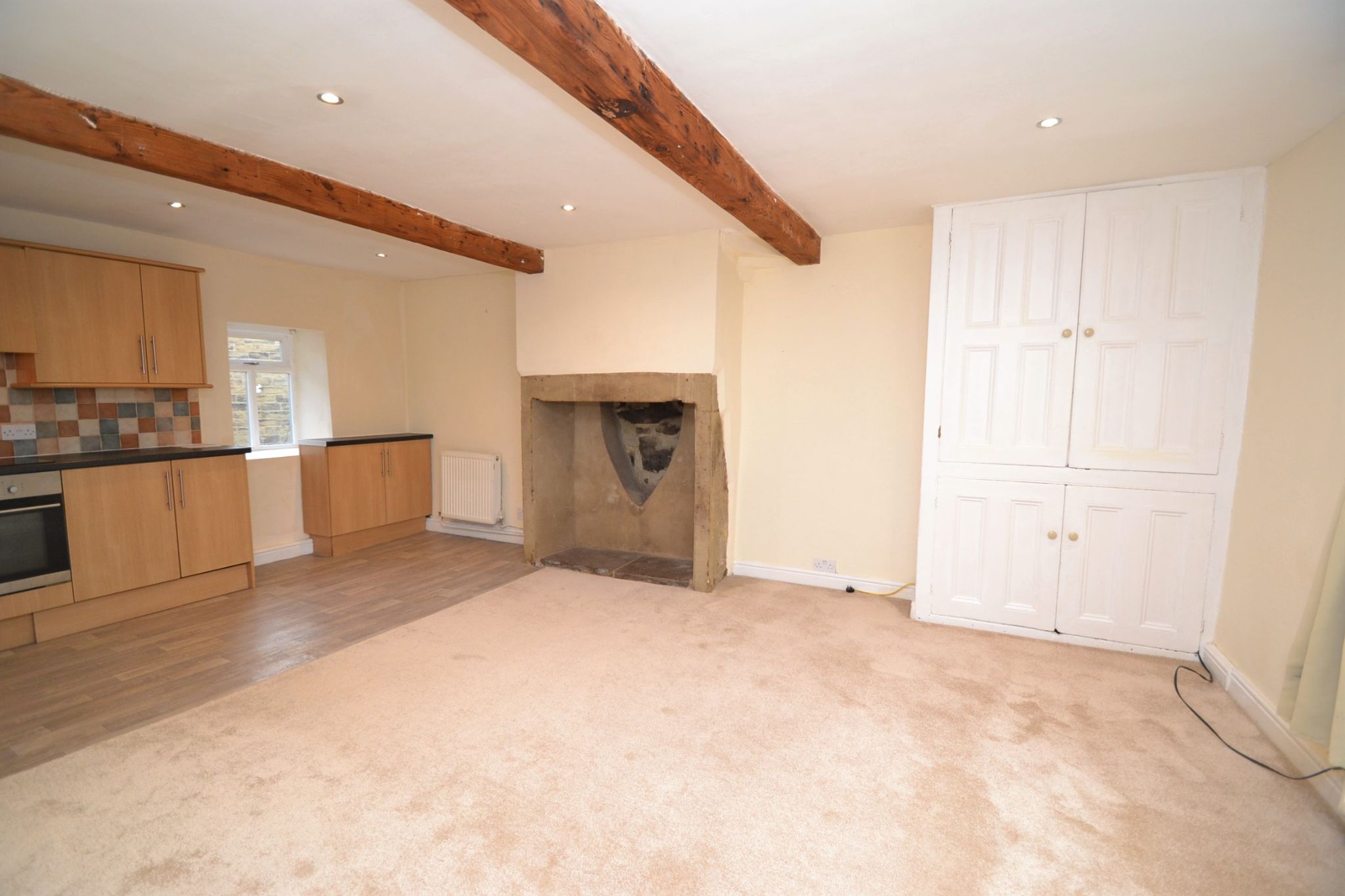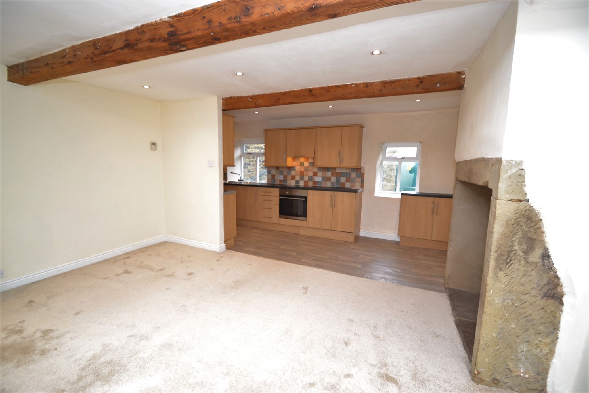 Lounge with Kitchen Area. 5.95m x 5.83m (19'5 x 19'1). Wood dg mullion window, radiator, built in cupboard storage, impressive stone feature inglenook fireplace which could be re-opened up to make a superb log burner fire feature, original beam features, thermostat control. In the kitchen area are a range of wall & base units in modern light oak, work tops with contrasting tiling above, extractor over a 4 ring ceramic electric hob, built in electric oven in stainless steel, tall boy fridge freezer, plumbed for an auto-washer, stainless steel 1.5 sink with a mixer tap, Ideal Classic 2 year old condensing boiler in a wall unit, two wood dg windows to rear, radiator.