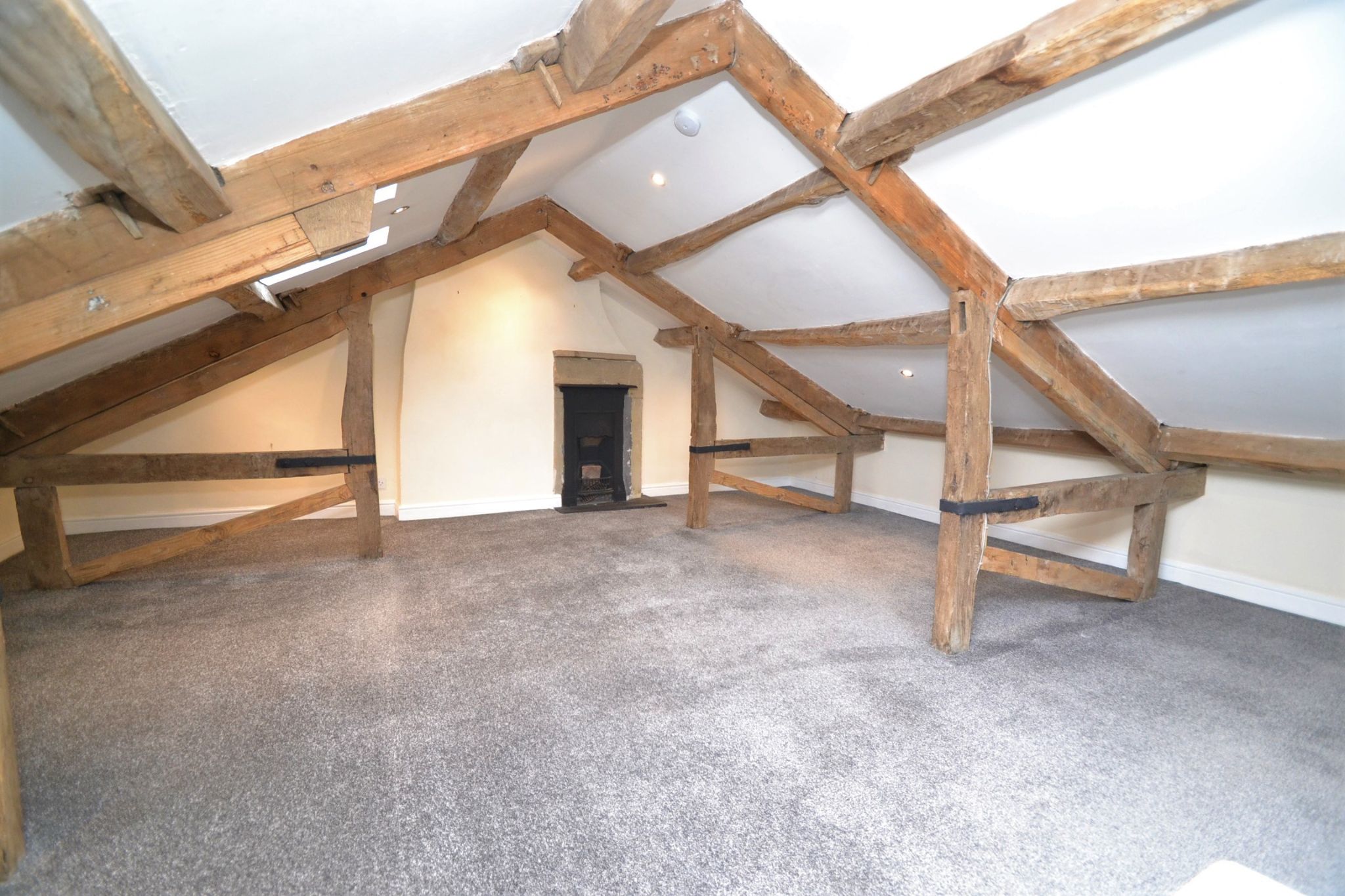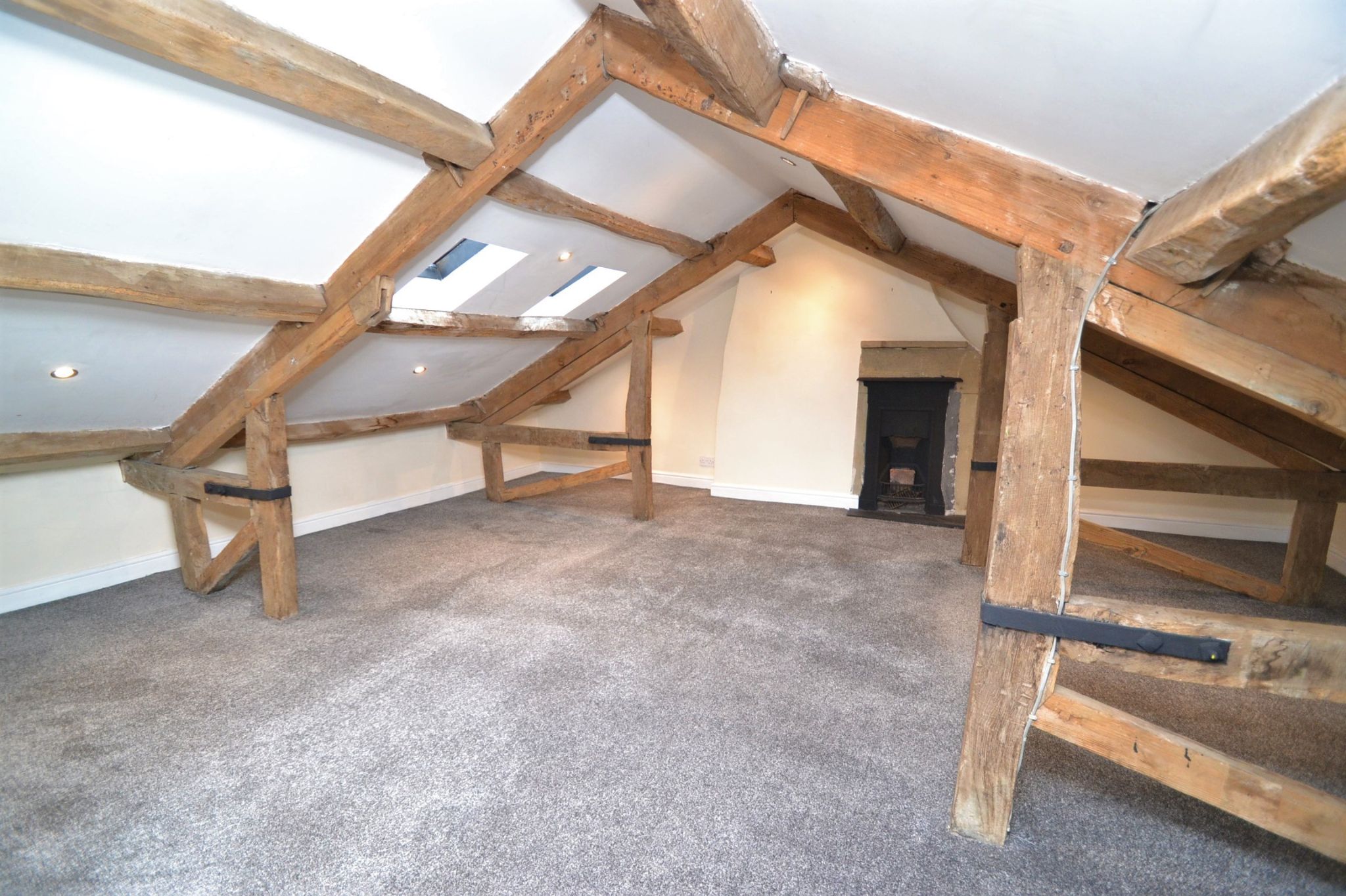 Bedroom 3: 5.96 x 5.64m (19'5 x 18'5). Feature Norman style archway window with exposed stone features and side panes, the main feature of this room are the extensive beams, inset led ceiling lighting, radiator, two heritage ceiling velux windows, painted black cast iron fireplace with a stone surround.