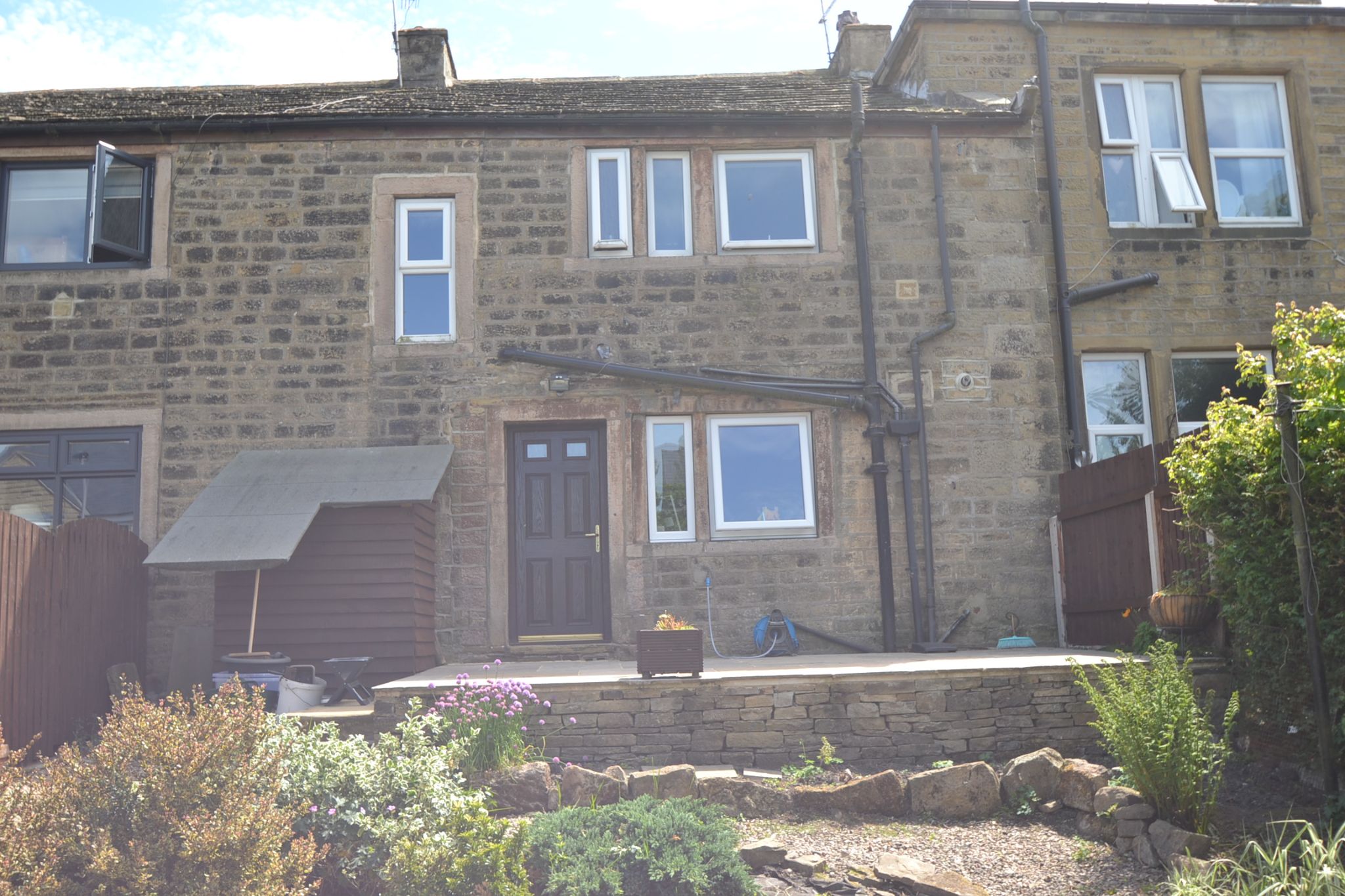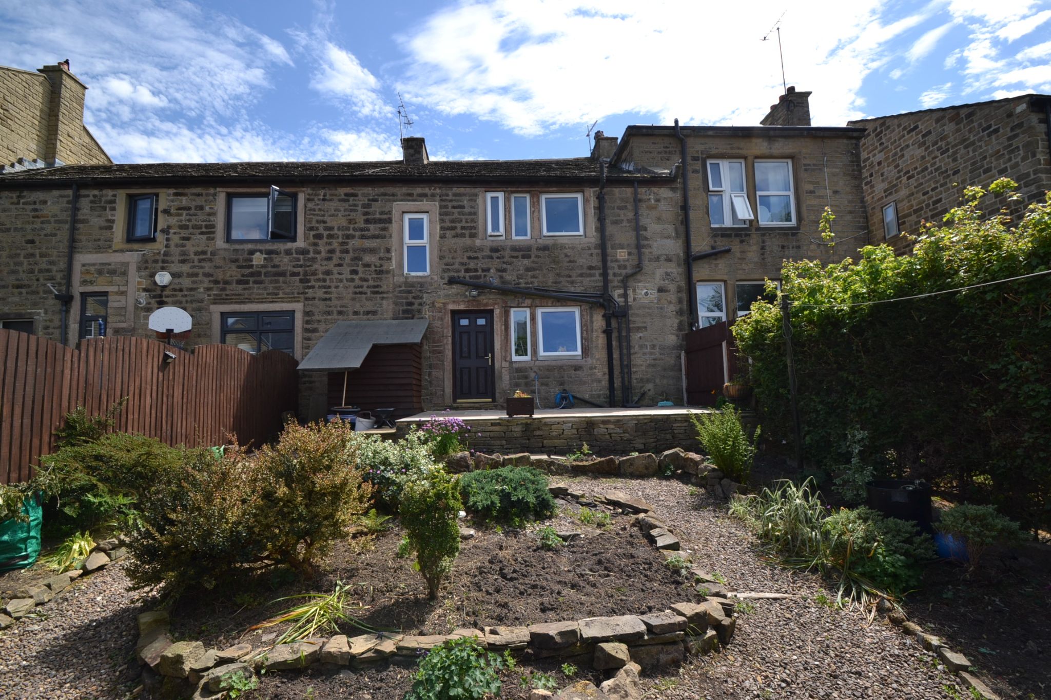 Externally: To the front is gated acces onto a Yorkshire stone flagged pathway, gravel garden. To the rear is an Indain stone flagged patio, useful storage shed, water tap, sensor secrity light, steps down to a low maintenance gravel garden with raised borders, good size decked area, gate to the parking space for 1 car.