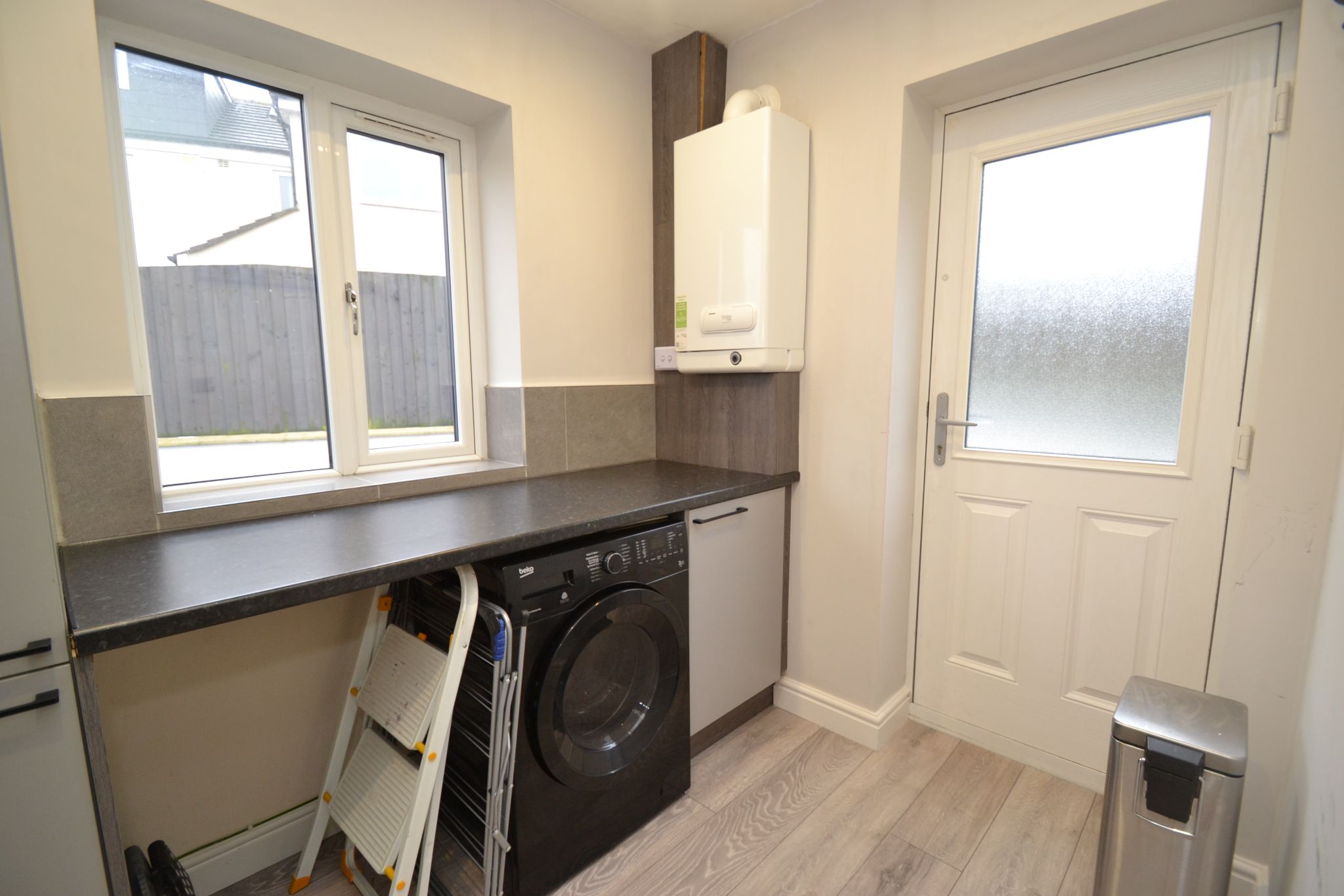 Utility Room: 2.47m x 1.85m (8'10 x 6'0). Work top with units, Vokera Easi heat plus condensing combi-boiler, Upvc dg window to front, side entrance door, inset ceiling lights, laminate floor, plumbed for an auto-washer.
