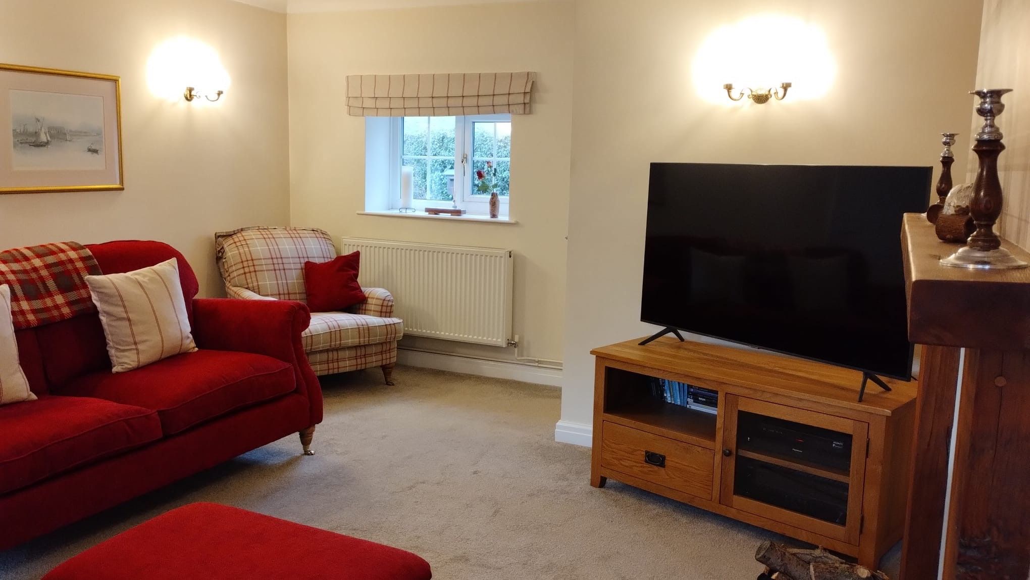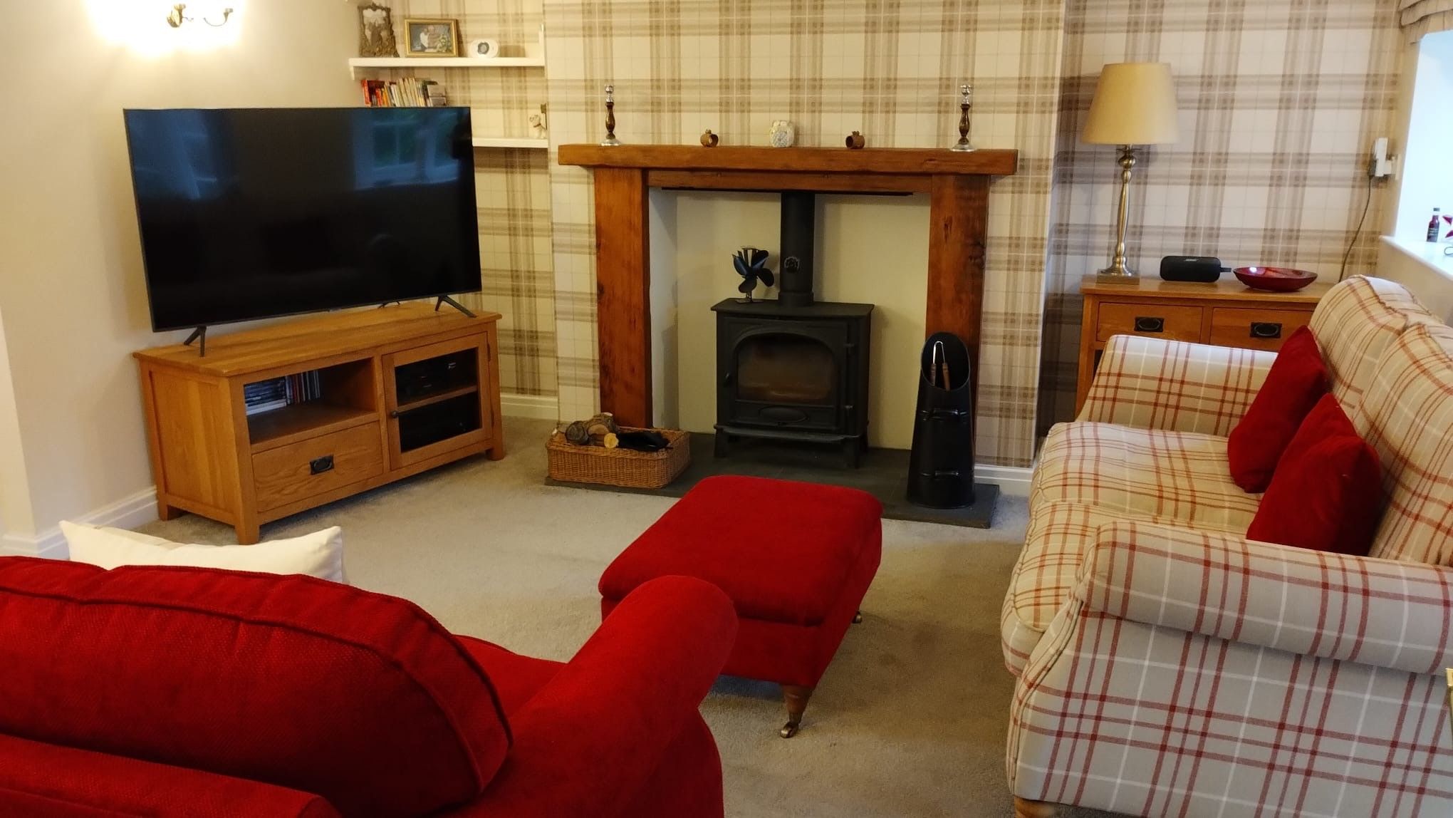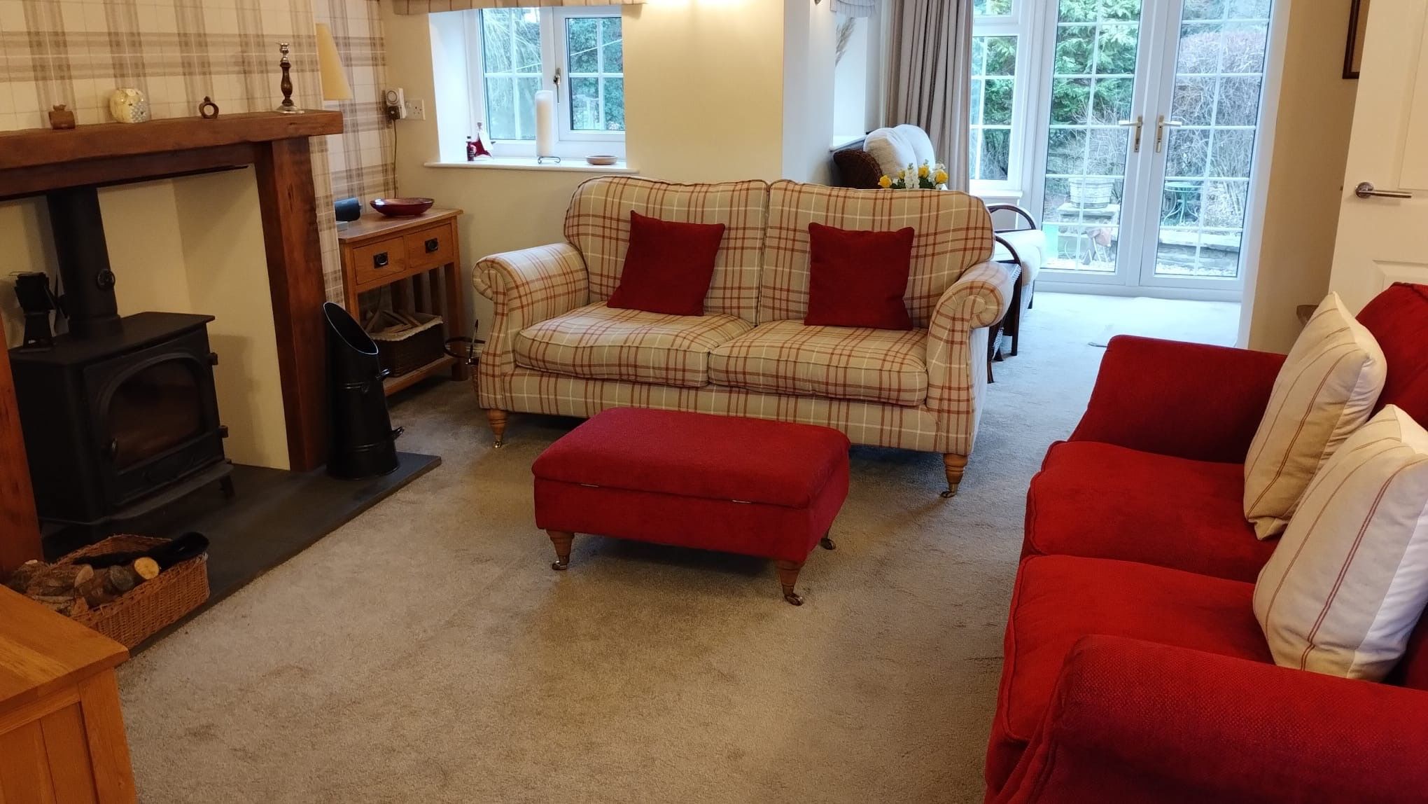 Lounge: 4.95m x 4.54m (16’3” x 14’11”) Double aspect to front and rear of the property. Multi-fuel stove, ch radiator, coving, wall lights.