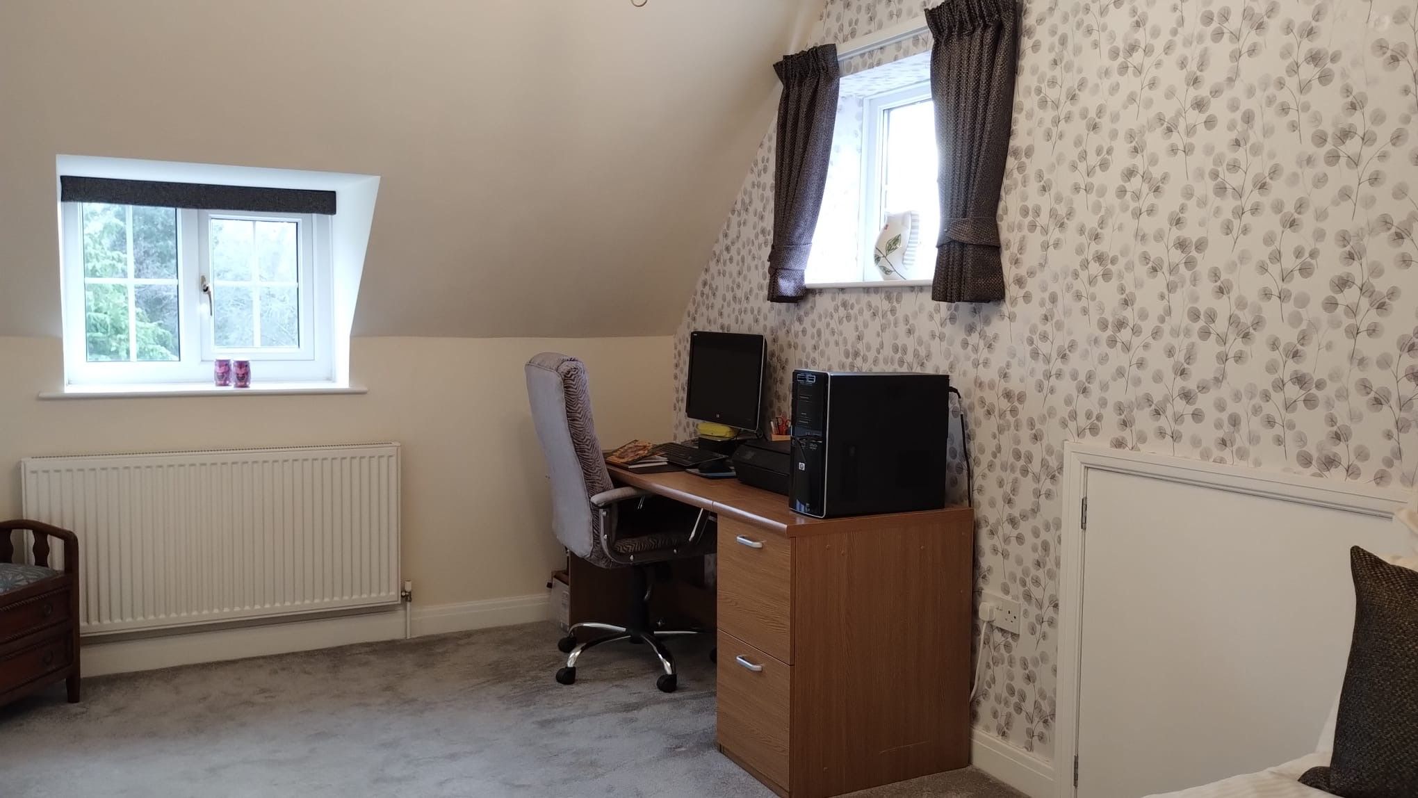 Bedroom 3: 4.98m x 2.84m (16’4” x 9’4”) Double bedroom, triple aspect to front, rear and side. Access to boarded and carpeted loft area above the kitchen, ch radiator.
