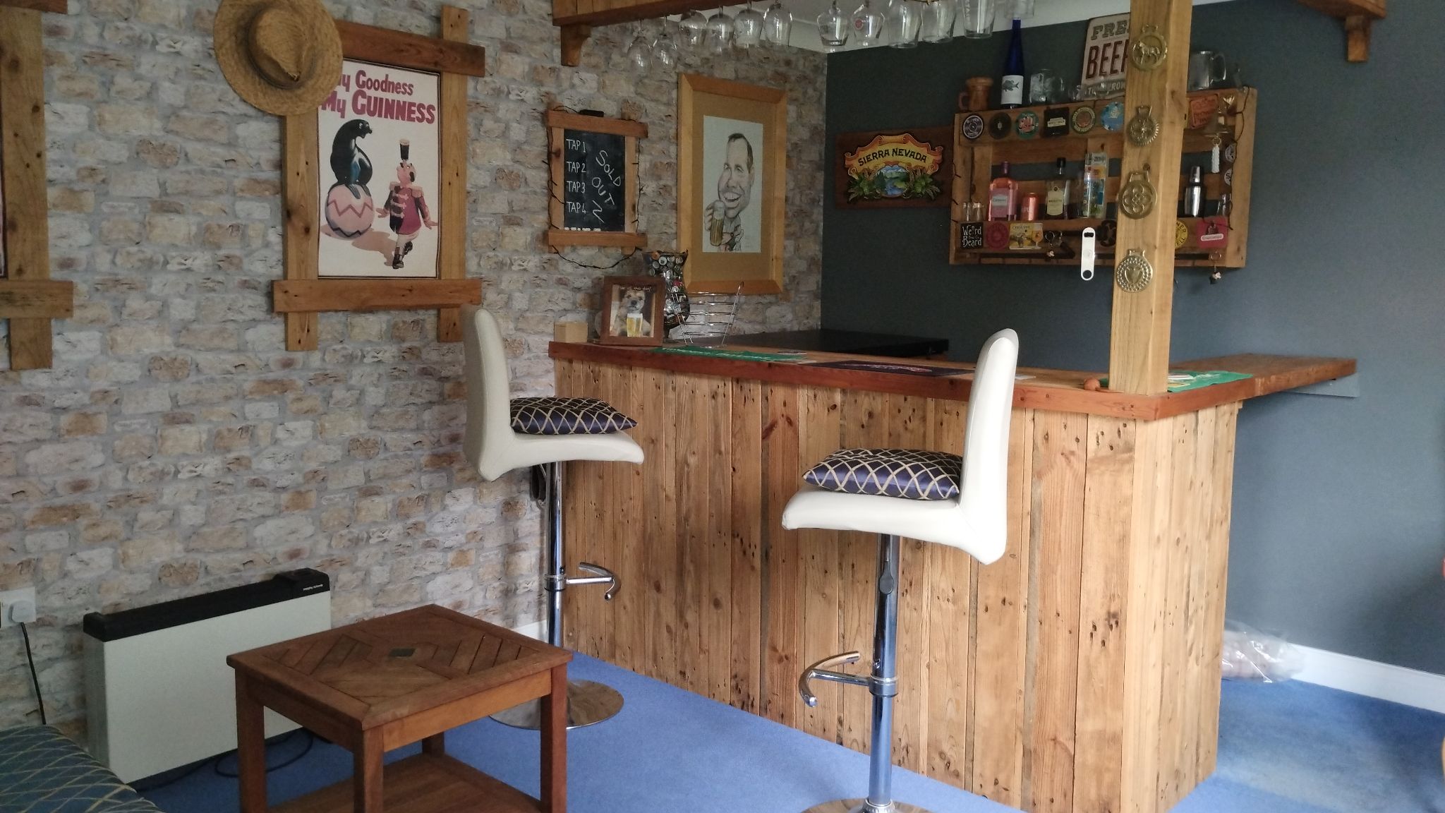 Bar/Workshop/Home office: 3.92m x 3.31m (12’10” x 10’10”) Currently used as a bar/entertaining space with access to the rear garden, this could easily be converted to a home office for those wishing to work from home. Large window overlooking the rear garden, ch radiator.