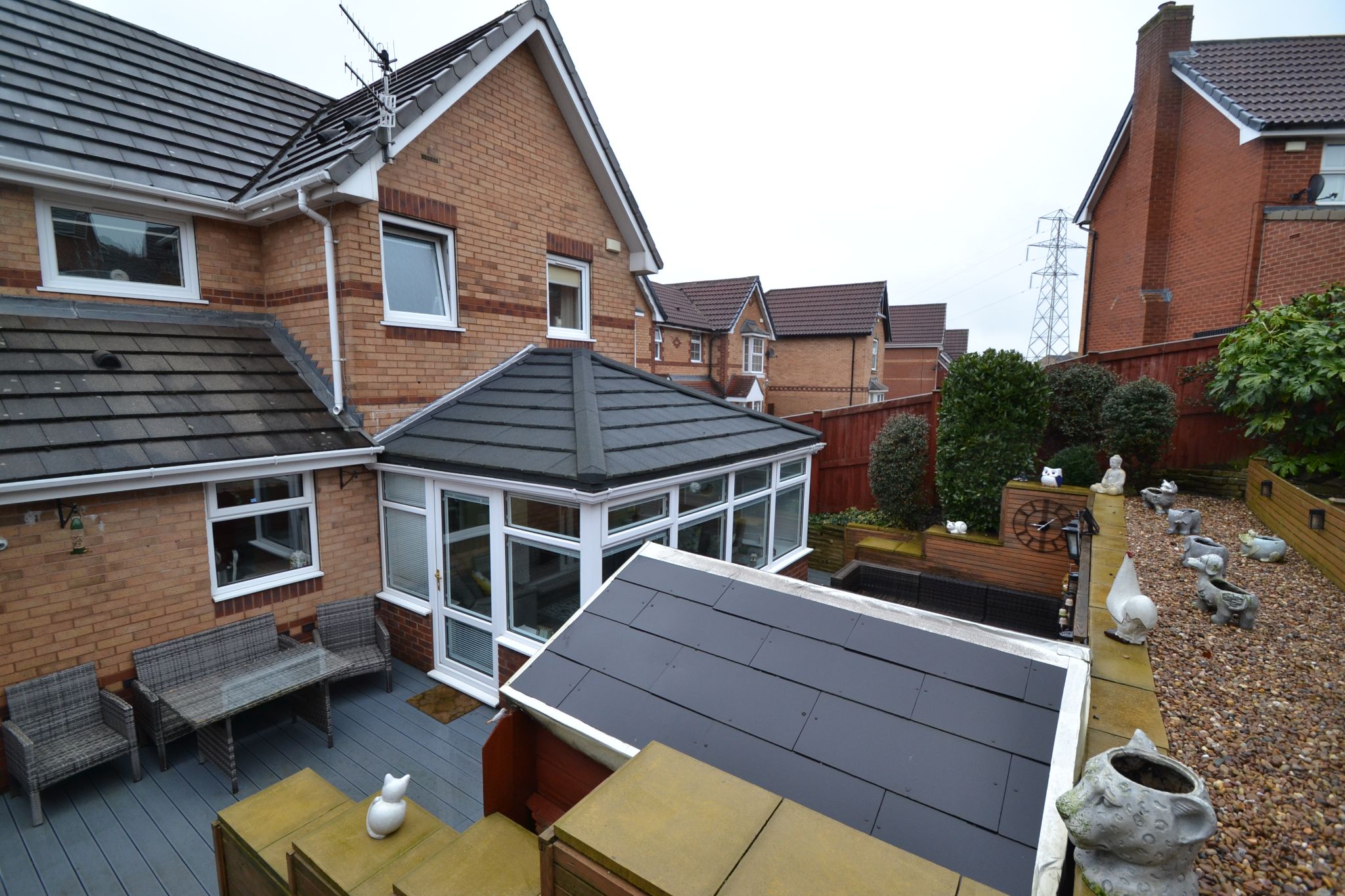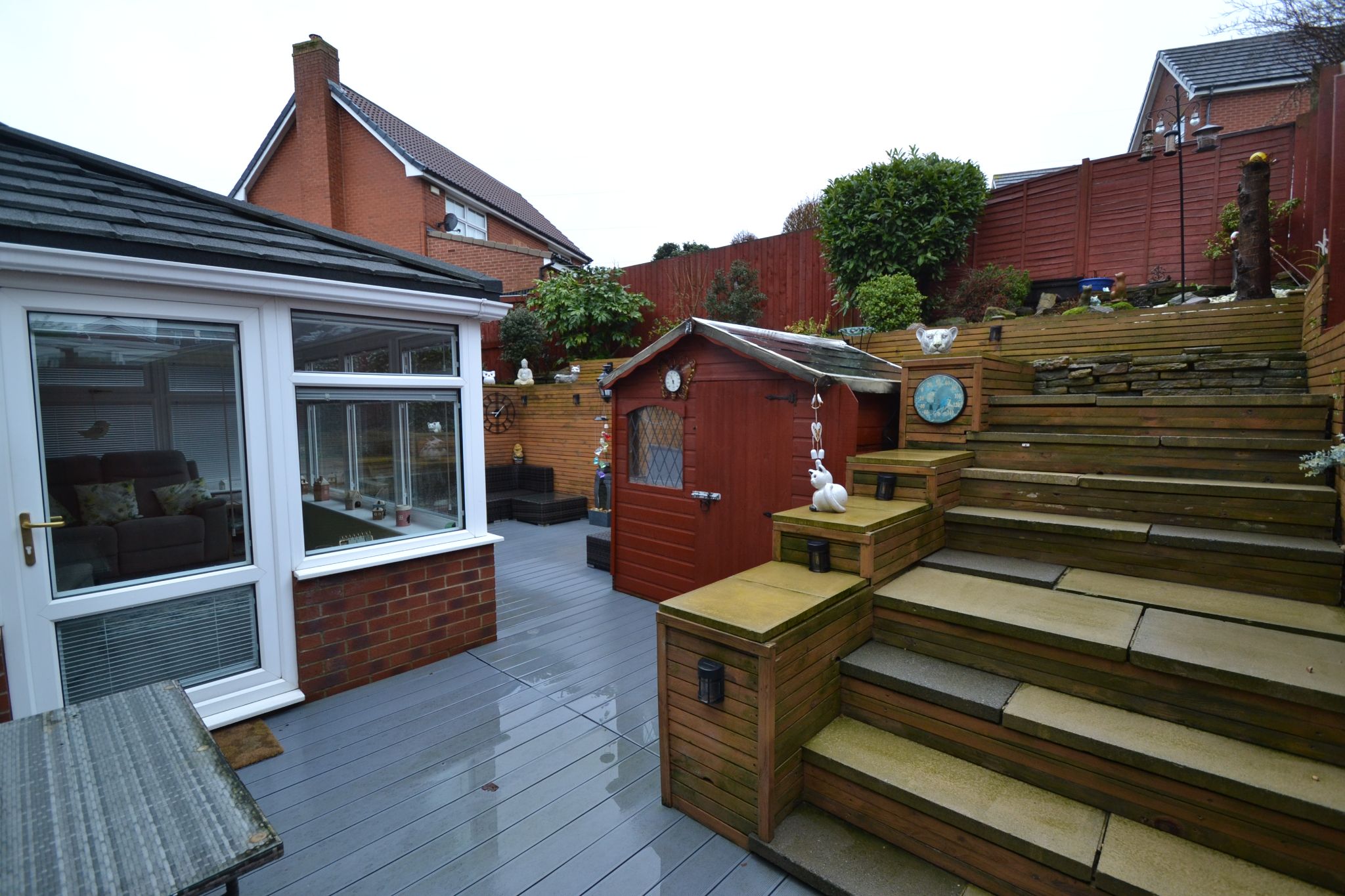 Externally: To the front is a resin garden area, tarmac driveway. To the rear is a south facing landscaped garden, part decked patio, patio area, shed, tiered and stepped offering a low maintanance garden.