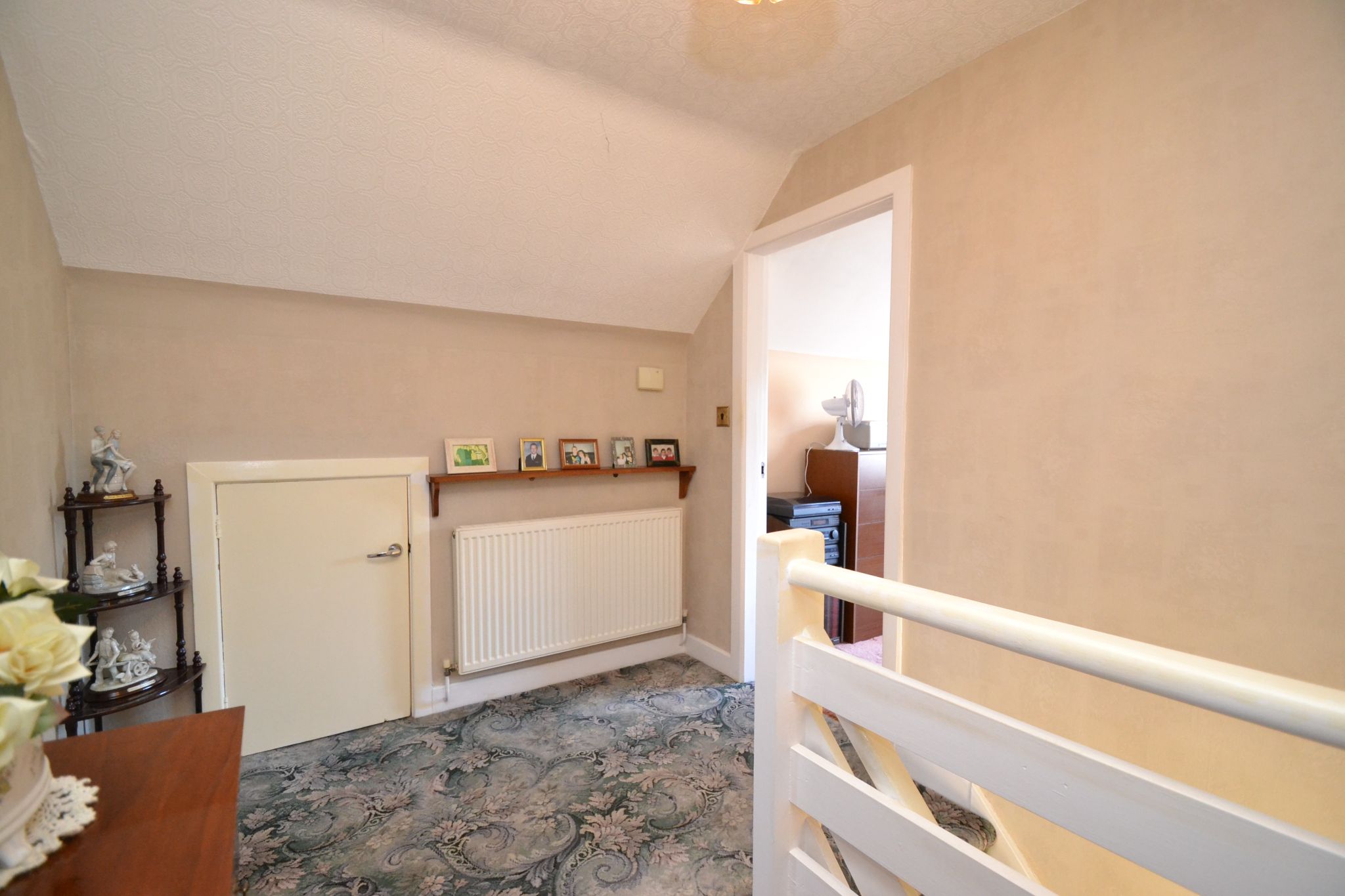 Landing & Stairs: Spacious landing, two access doors to useful roof under drawing storage, radiator, useful storage cupboard.