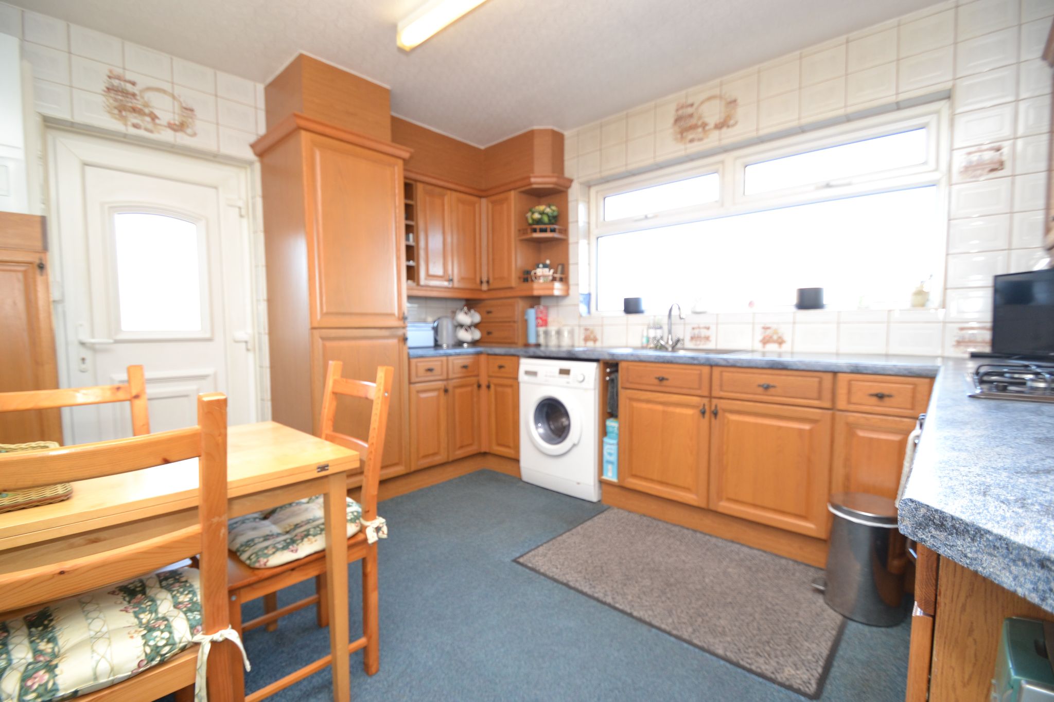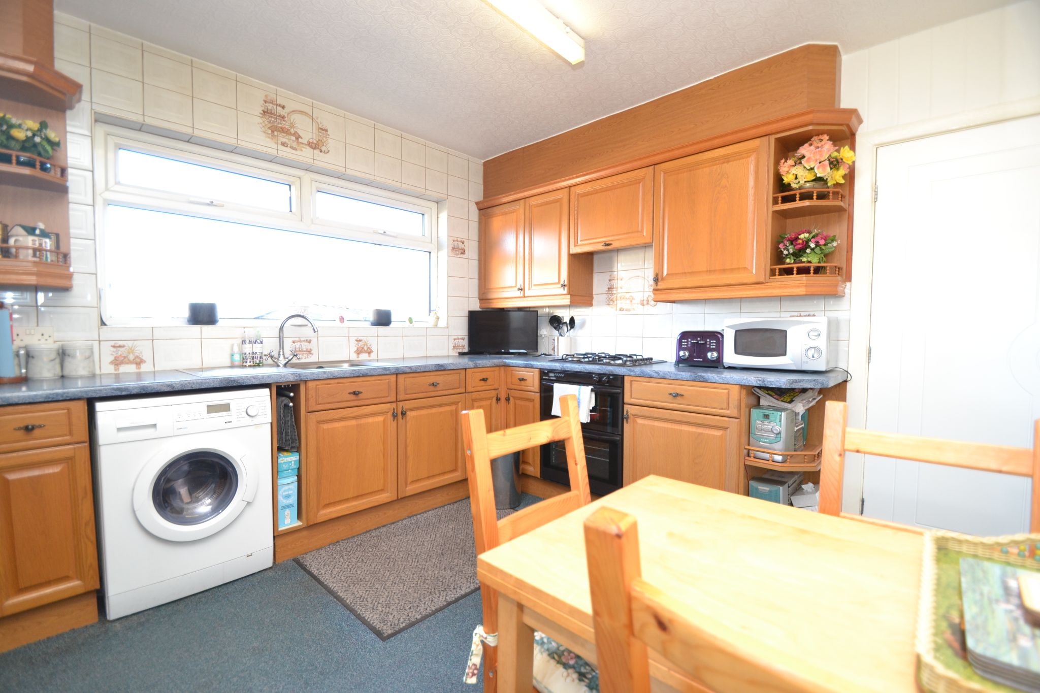 Kitchen Diner: 3.60m x 3.29m (11'8 x 10'7). Range of wall & base units in oak, work tops with tiling above, extractor over a 4 ring gas hob and built in double gas oven, plumbed for an auto-washer, stainless steel sink, Upvc dg window to rear, integrated fridge and freezer, radiator, space for a breakfast table and chairs, wall mounted Vaillant Eco Fit Pure condensing combi-boiler, side part glazed Upvc dg door, alarm panel.