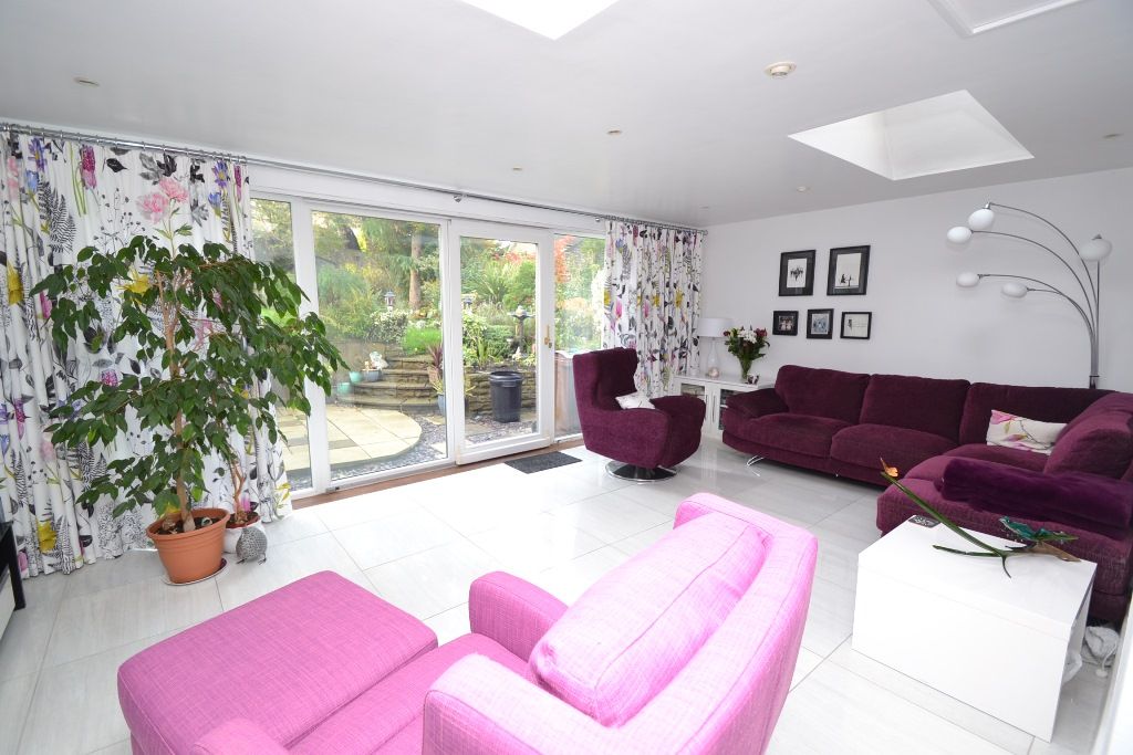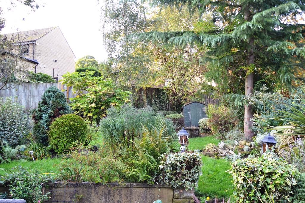 Externally: To the front is a low level lawned garden, flagged and gravel drive for 3 cars leading to the garage. Secure gated access onto the side pathway leads to the large rear SW facing garden. Blue slated and flagged patio with steps up to the lawned garden with established borders, dilapidated pond.