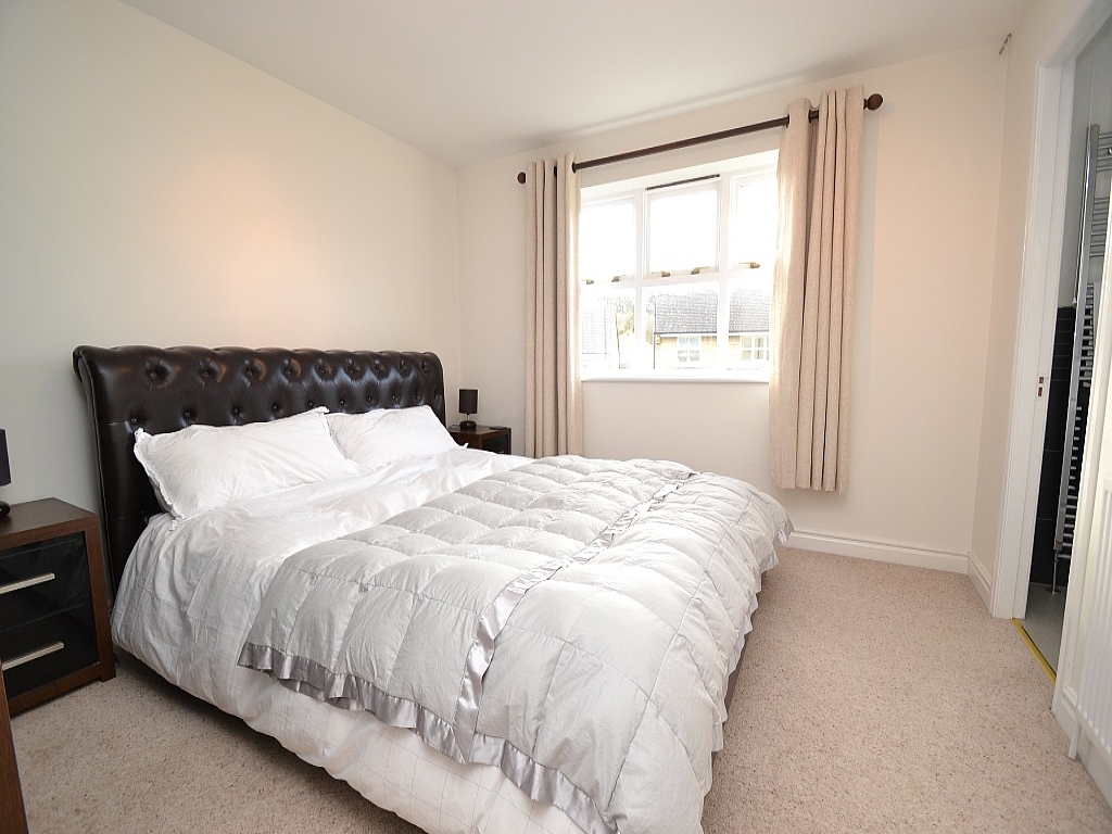 En-Suite: 9'0 x 7'1. Double shower cubicle, with mosaic tiling, chrome thermostatically controlled unit, contemporary styled wc and wash basin, heated chrome towel rail, frosted dg window, inset chrome ceiling lights, linen cupboard.