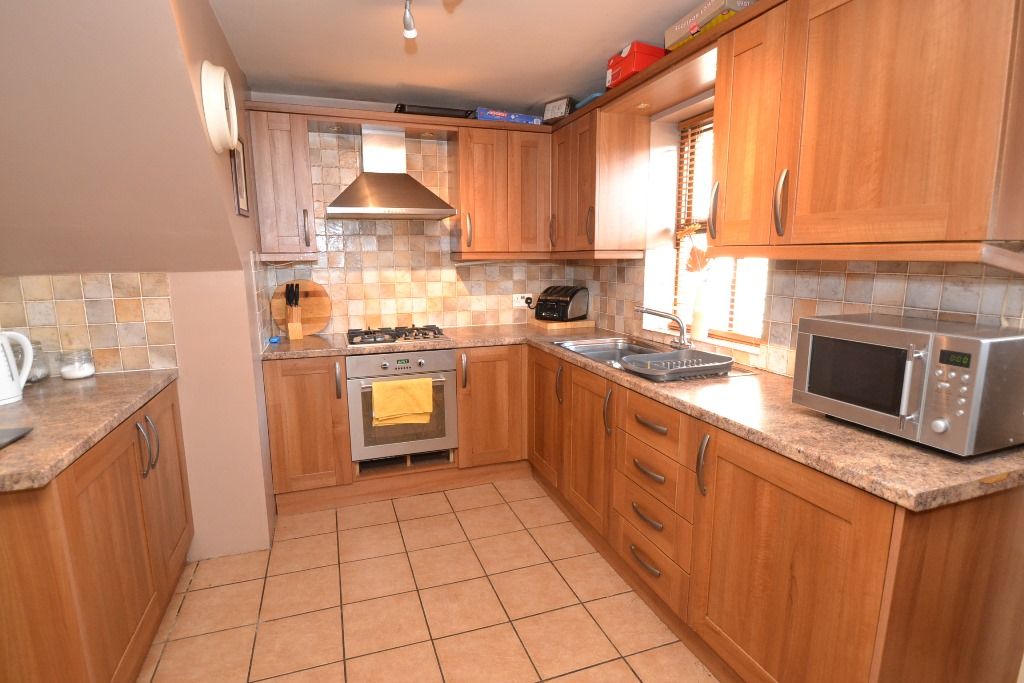 Kitchen: 3.72m x 2.88m (12'2 x 9'5). Range of wall & base units in walnut, pelmet down lighting, work tops with rustic tiling above, stainless steel extractor over a 4 ring gas hob, built in electric cooker all in stainless steel, integrated fridge, stainless steel sink with a mixer tap, rear dg window, rear door, alarm panel, tiled floor.