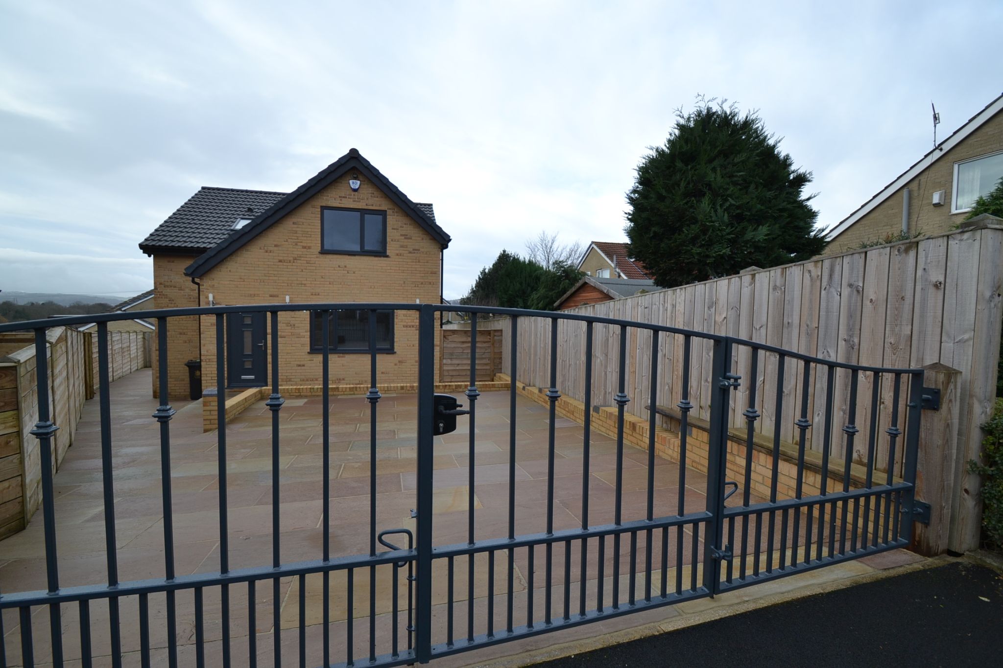 Externally: Front powder coated galvanised double gates lead onto the flagged Indian stone drive for several cars, newly fenced, Indian stone extends around both side elevations along with to the rear offering a large enclosed SW facing garden. Lighting all round and flood lighting to the rear, water tap, double electric point.