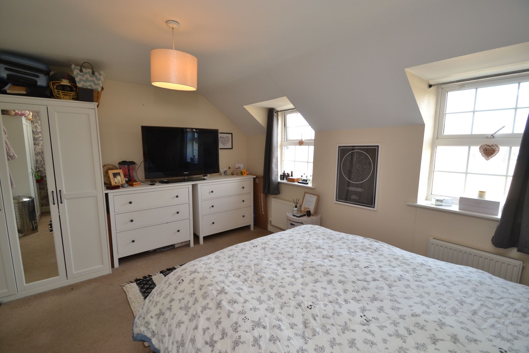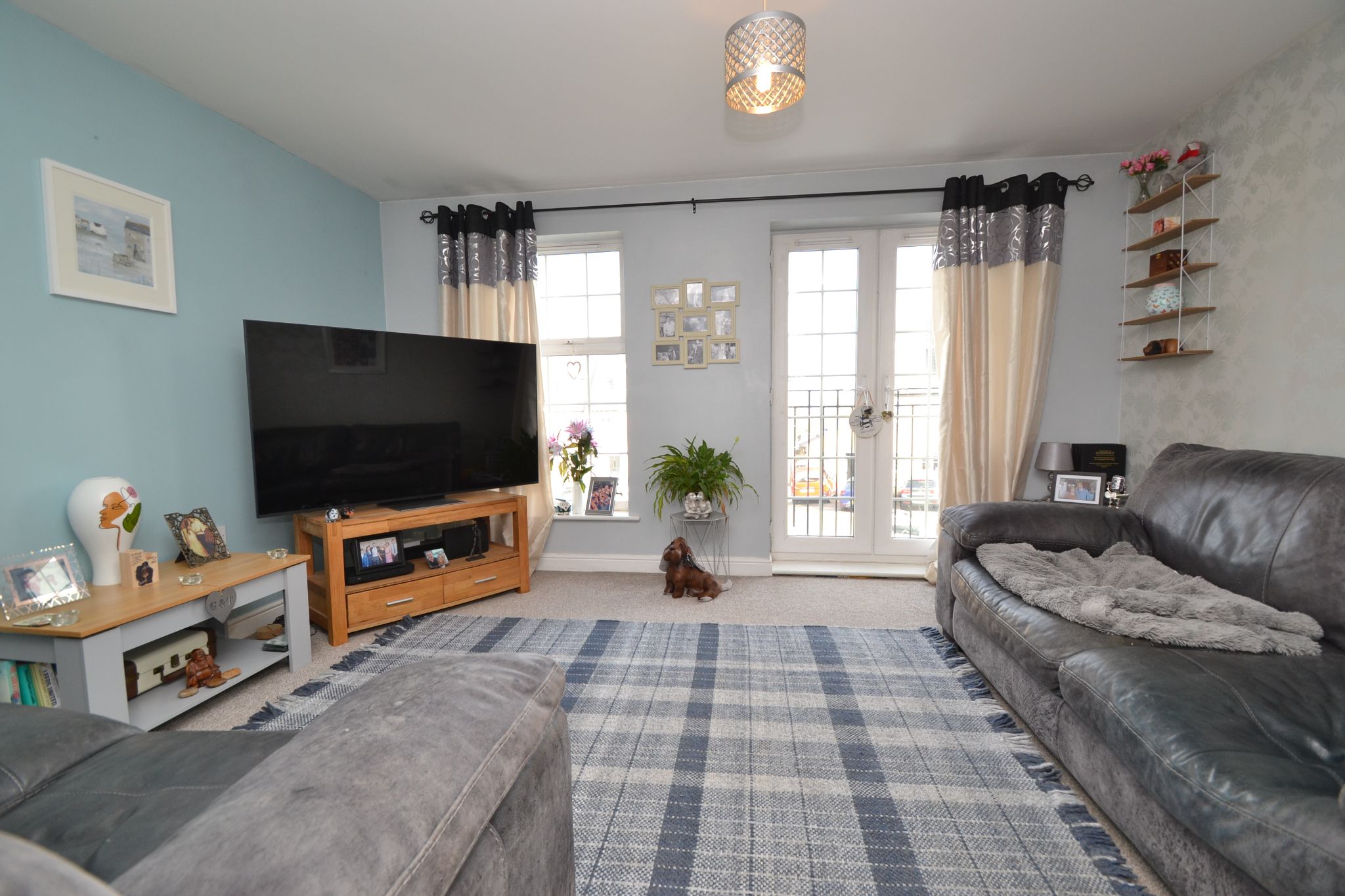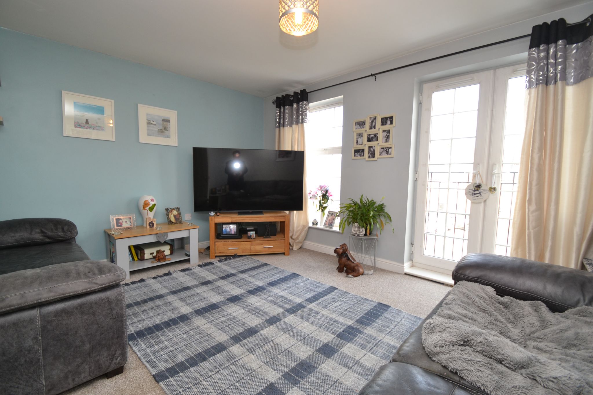 The living room is neutrally decorated, offering plenty of natural light and benefits from a Juliette balcony overlooking the front elevation.