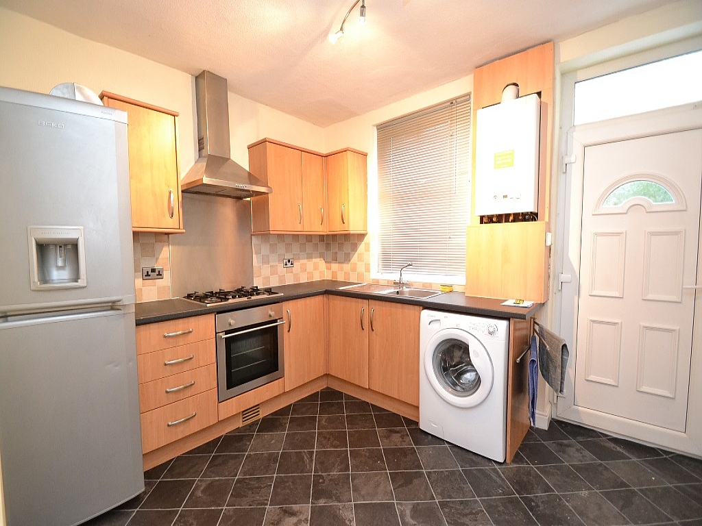 Modernised stone mid-terrace property to be let on an unfurnished basis. Comprising, lounge, spacious kitchen dining room in beech, tall boy fridge freezer and washer included, hob and electric cooker with extractor over all built in, first floor 2 bedrooms, bathroom, second floor attic bedroom 3, gch and combi-boiler, alarm, Upvc dg, rear hardstanding garden/yard, small flagged frontage. NO DSS OR PETS, NON SMOKERS ONLY.