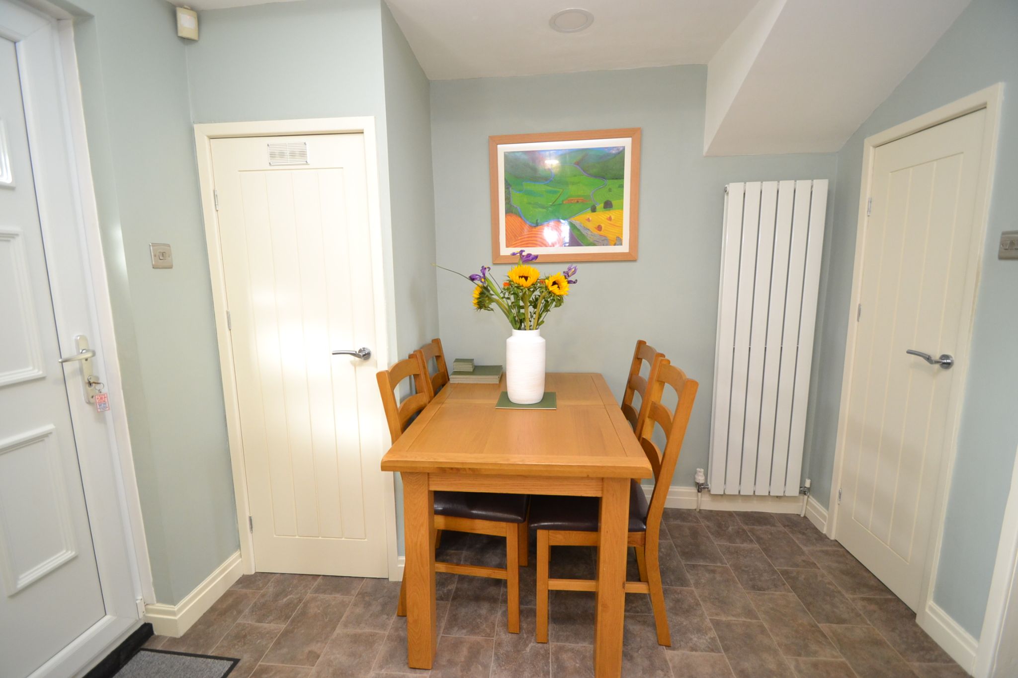 Entrance: Front composite door into the hall, stairs, radiator, alarm panel.
