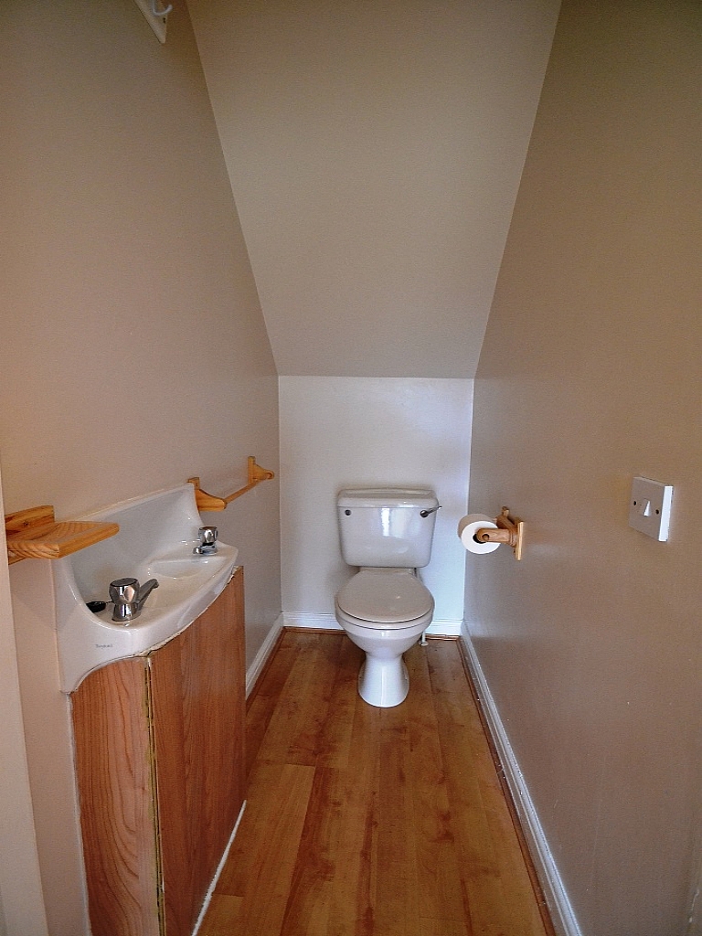 Cloaks: Hand wash basin, wc, laminate floor.