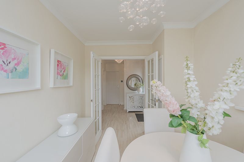 Dining Room: 11' 3" x 7' 6" (3.43m x 2.29m). Glazed French doors, Upvc dg windows to front and side, radiator, laminate floor, useful storage cupboard.