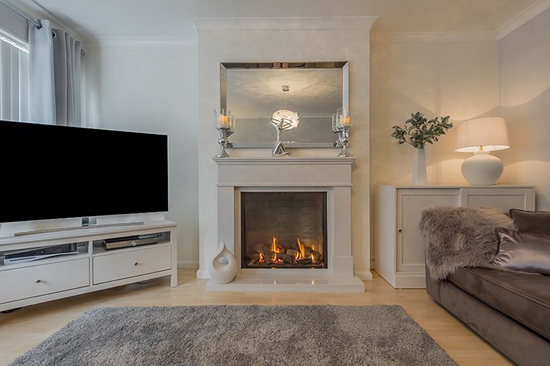 Lounge: 14' 4" x 13' 0" (4.37m x 3.96m). Upvc dg bay window to front, radiator, laminate floor, feature marble fireplace with a log effect fire, coving.