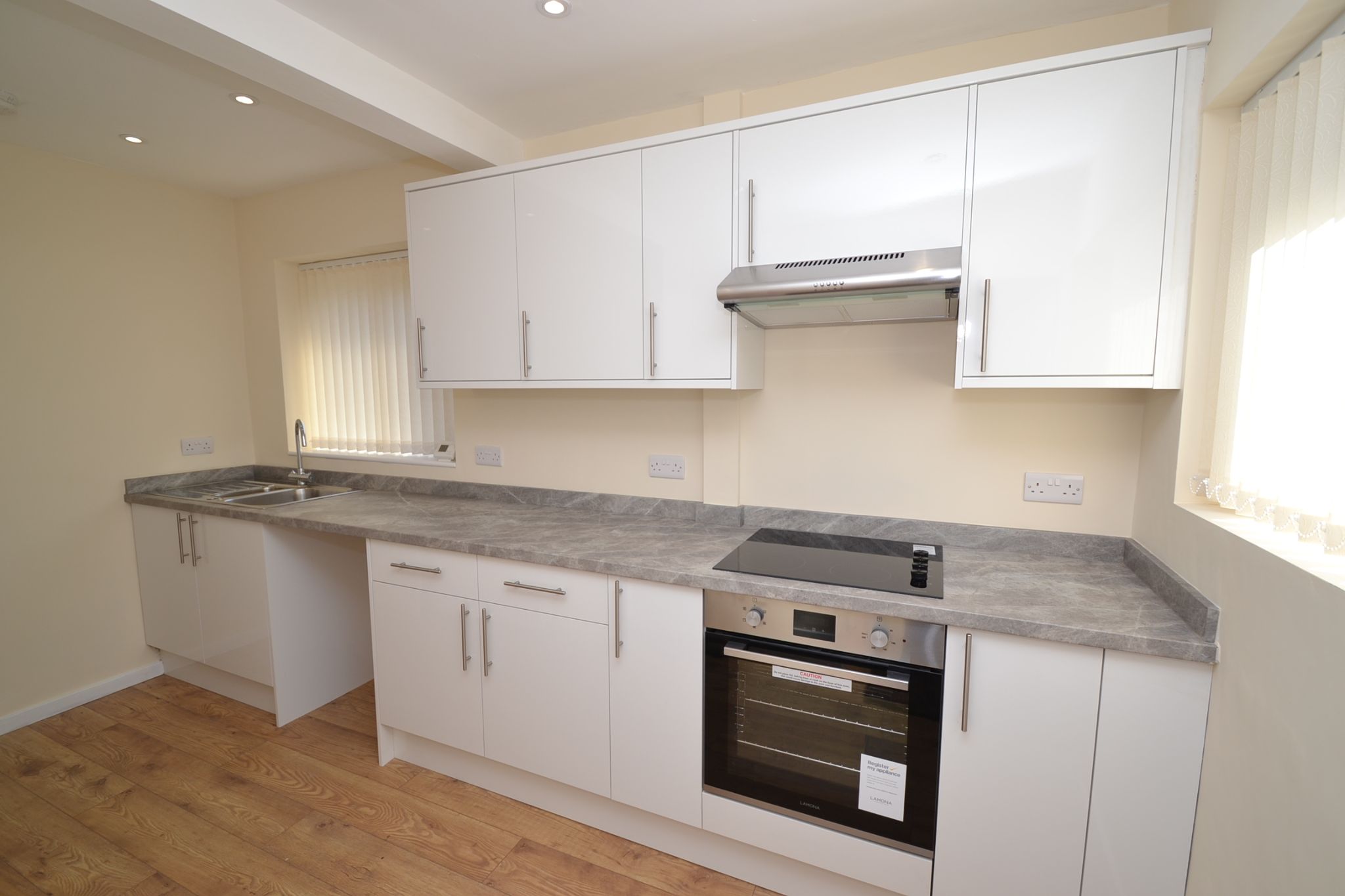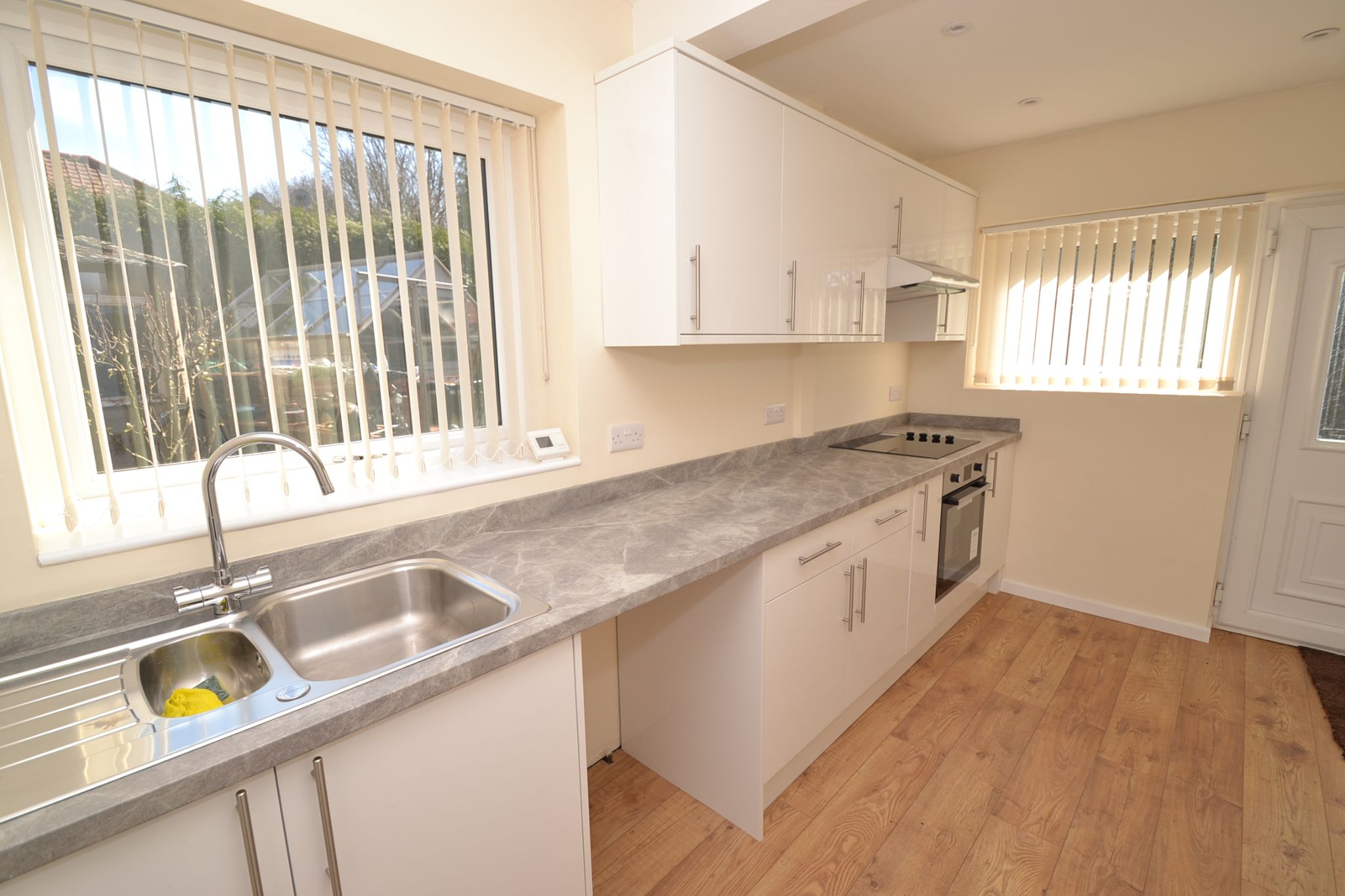 Kitchen: 4.02m x 2.40m (13'1 x 7'8). Newly installed range of wall & base units, work tops and splash backs, stainless steel extractor over a 4 ring halogen hob with built in stainless steel electric oven, 1.5 stainless steeel sink with a mixer tap, plumbed for a dishwasher,  Upvc dg side and rear windows with fitted blinds, rear Upvc door, radiator.