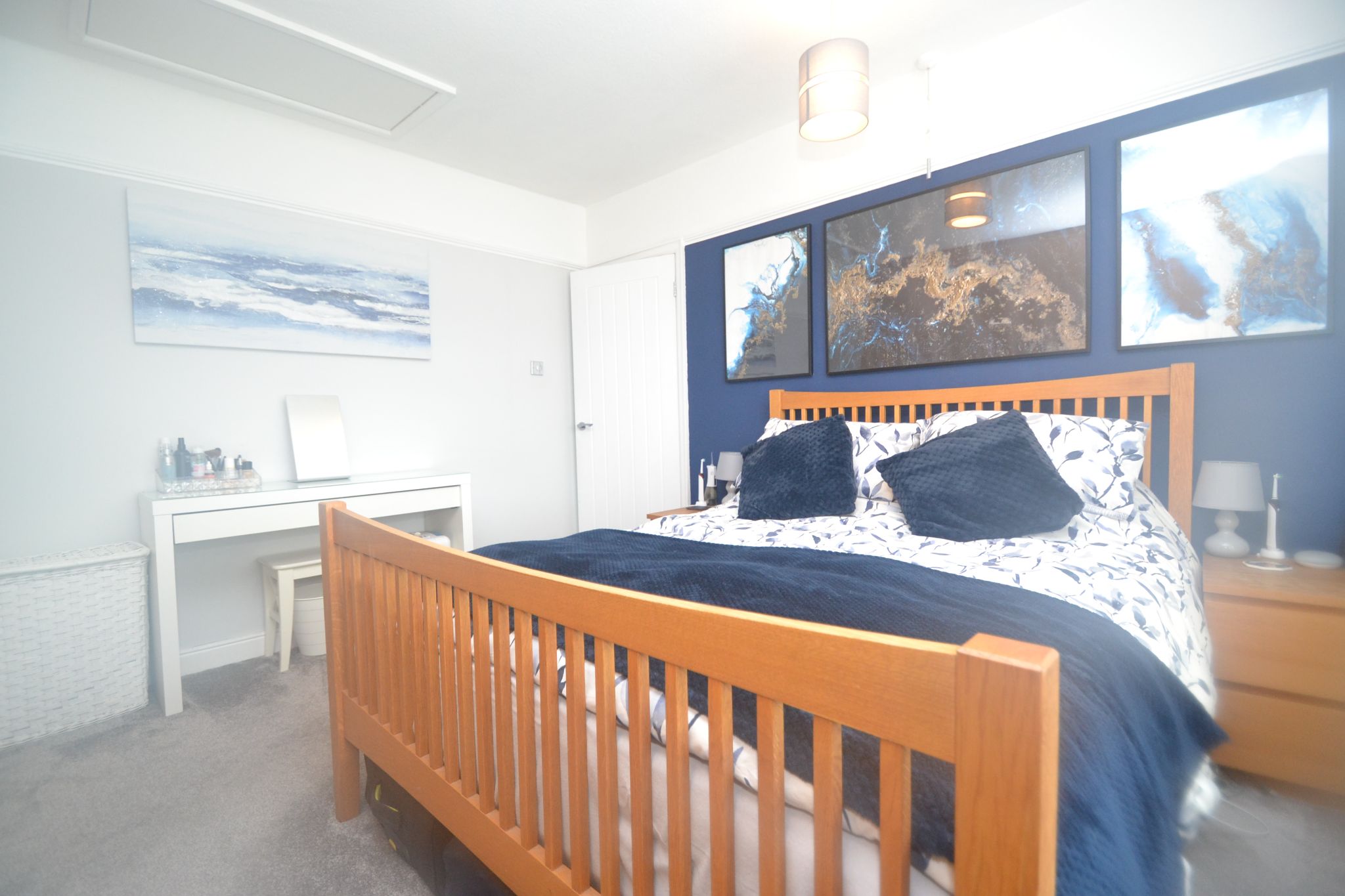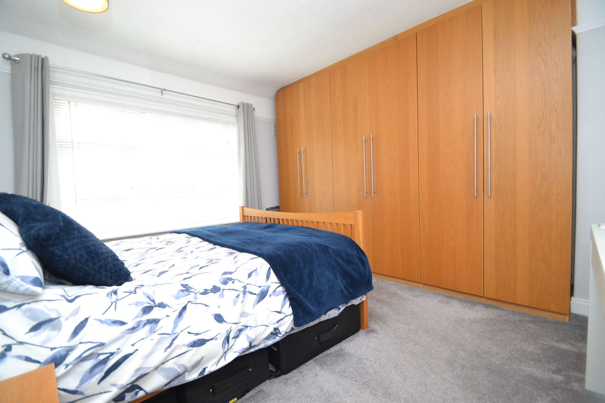 Bedroom 1: Upvc dg window to front with a fitted blind, picture rail, radiator, fitted wardrobes, access into the roof space with a drop down ladder.