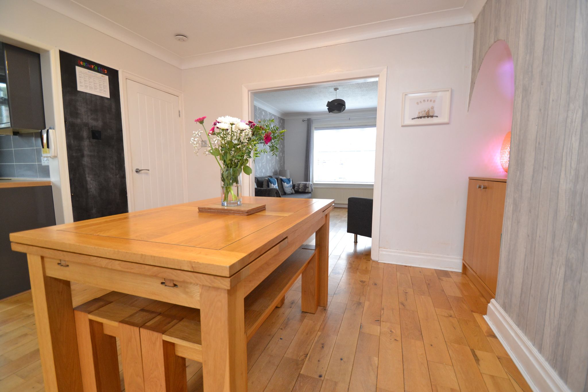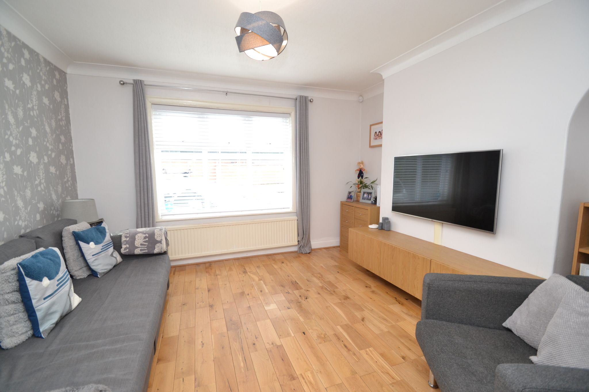 Lounge: Upvc dg window with a fitted blind, oak wood floor, radiator, facility for a flat screen TV, coving, access onto the:-