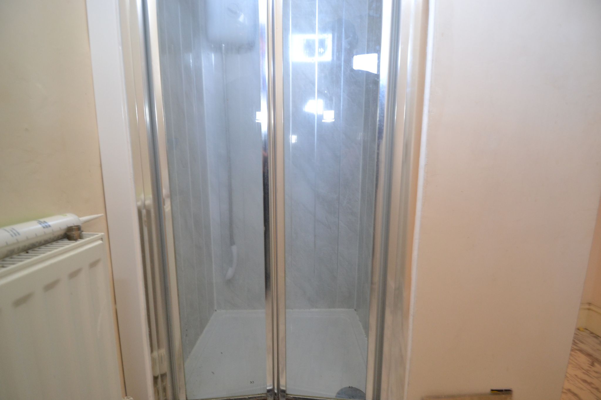 Inner Corrider: Radiator, separate shower cubicle with an electric shower and Upvc cladded, rear door, storage, condensing boiler.