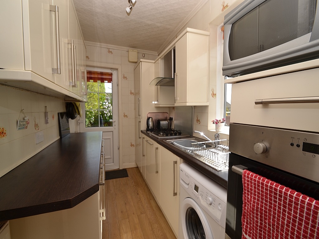 Kitchen: 11'5 x 6'0. Fitted range of modern wall & base units in high gloss, walnut work tops with tiling above, stainless steel splash back with extractor over the 4 ring stainless steel gas hob, built in stainless steel electric oven, side Upvc dg window, integrated dishwasher, Baxi condensing boiler, plumbed for an auto-washer, stainless steel sink with mixer tap, integrated fridge and freezer, rear Upvc door, ch radiator.