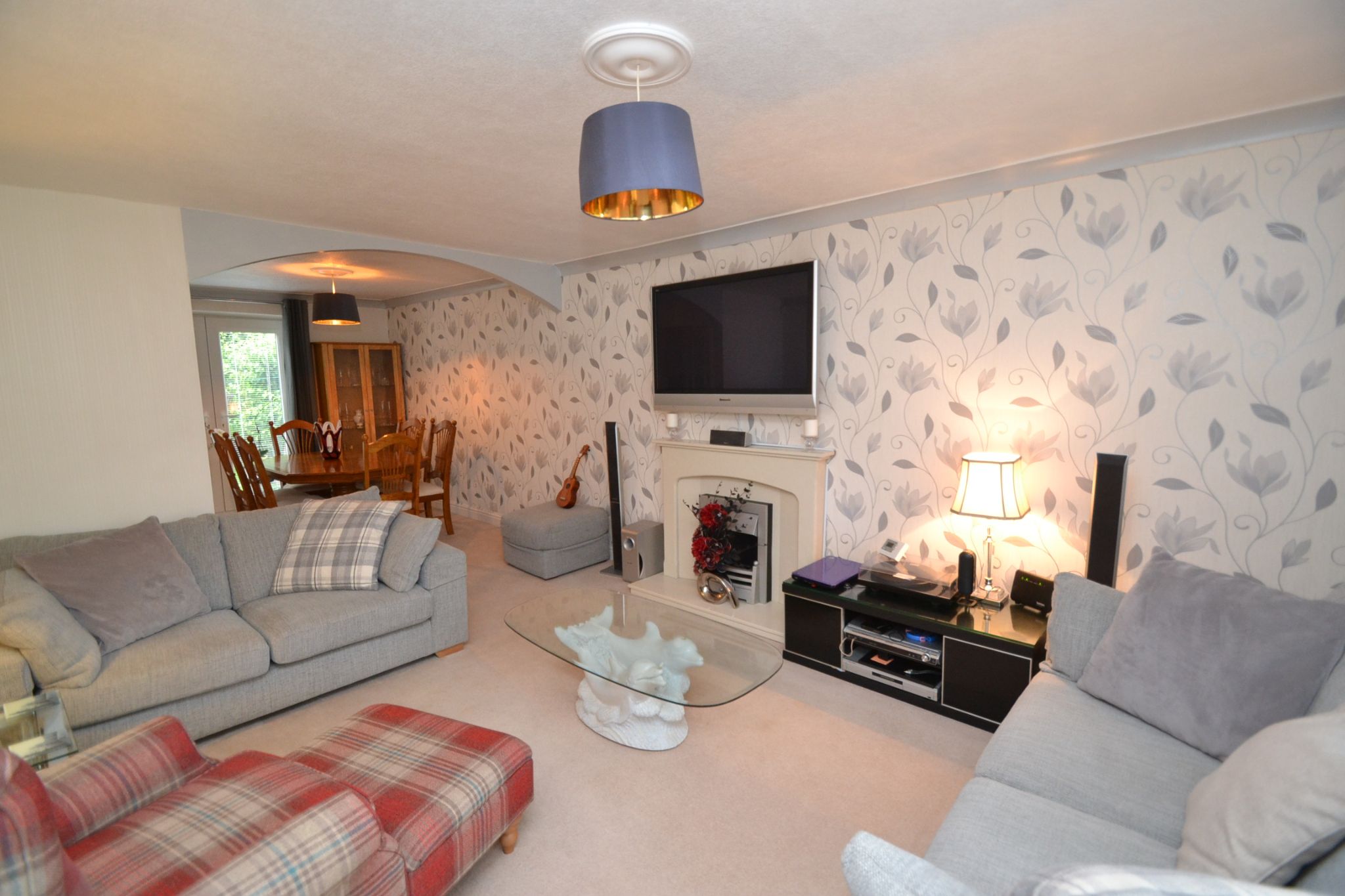 Lounge through to Dining Room: Upvc dg bay window to front with fitted blind, coving, radiator, marble fireplace and surround with electric living flame coal effect fire, archway leads through to the dining area with room for a large pull out table and 6 chairs, Upvc dg French doors to the rear with fitted blind, coving, radiator.