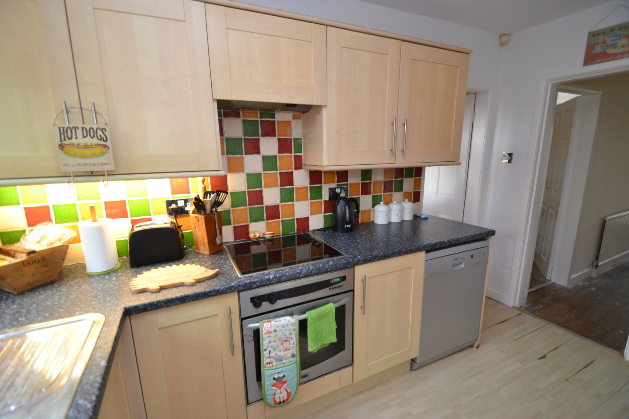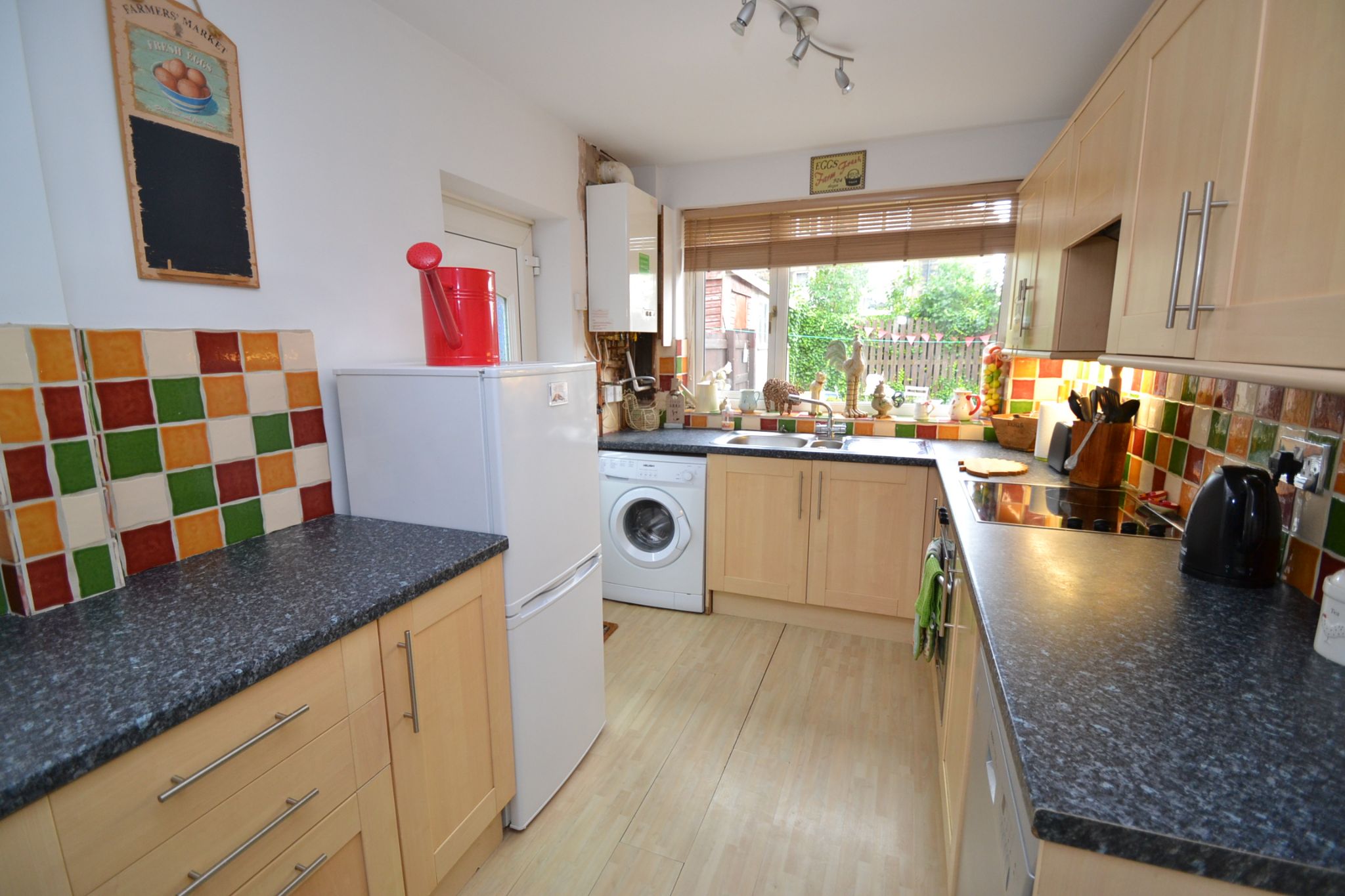 Kitchen: 3.57m x 2.30m (11'7 x 7'5). Range of wall & base units in maple, work tops with contrasting tiling above and under lighting, 4 ring halogen hob with built in electric oven, plumbed for a dishwasher and auto-washer, space for a tall boy fridge freezer, wall mounted Vokera condensing boiler, stainless steel 1.5 sink with a mixer tap, Upvc dg window to side and rear along with a side Upvc door.