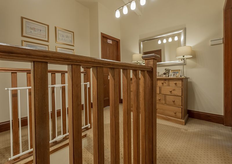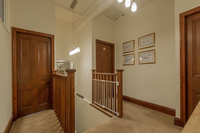 First Floor: Balustrade and spindle staircase to the spacious landing, high ceiling, alarm panel, access into the roof space.