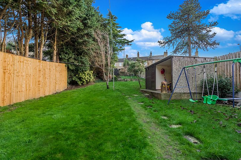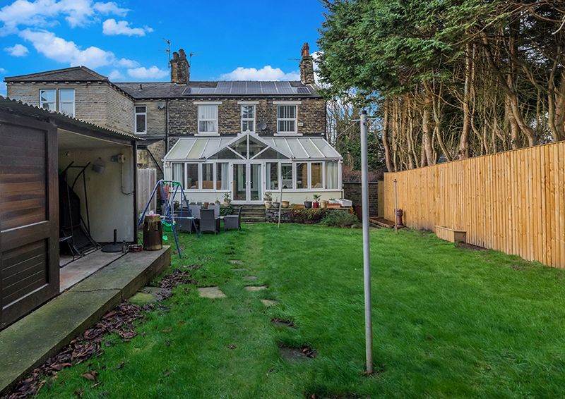 Here we have one of Thackleys prominent family homes, built in the Victorian era for a business owner and his family, it is modelled on the very same detached property as Eccleshill Industrial museum. In fact, this property was originally a detached style, and offers accommodation planned around a front south facing large conservatory, lounge, large breakfast kitchen, upstairs are 3 bedrooms, superb large family bathroom. To the basement on the rear ground level, is a cloaks, utility room, large reception family room/dining room, optional 4th bedroom/office. Externally, large lawned front south facing family garden with a summerhouse/storage facility, to the rear is a resin patio garden and drive leading to the large garage. Overall a superb growing family home. NOW REDUCED BY £25K MAKING THIS A MUST SEE PROPERTY OFFERING SUPERB FAMILY ACCOMMODATION.