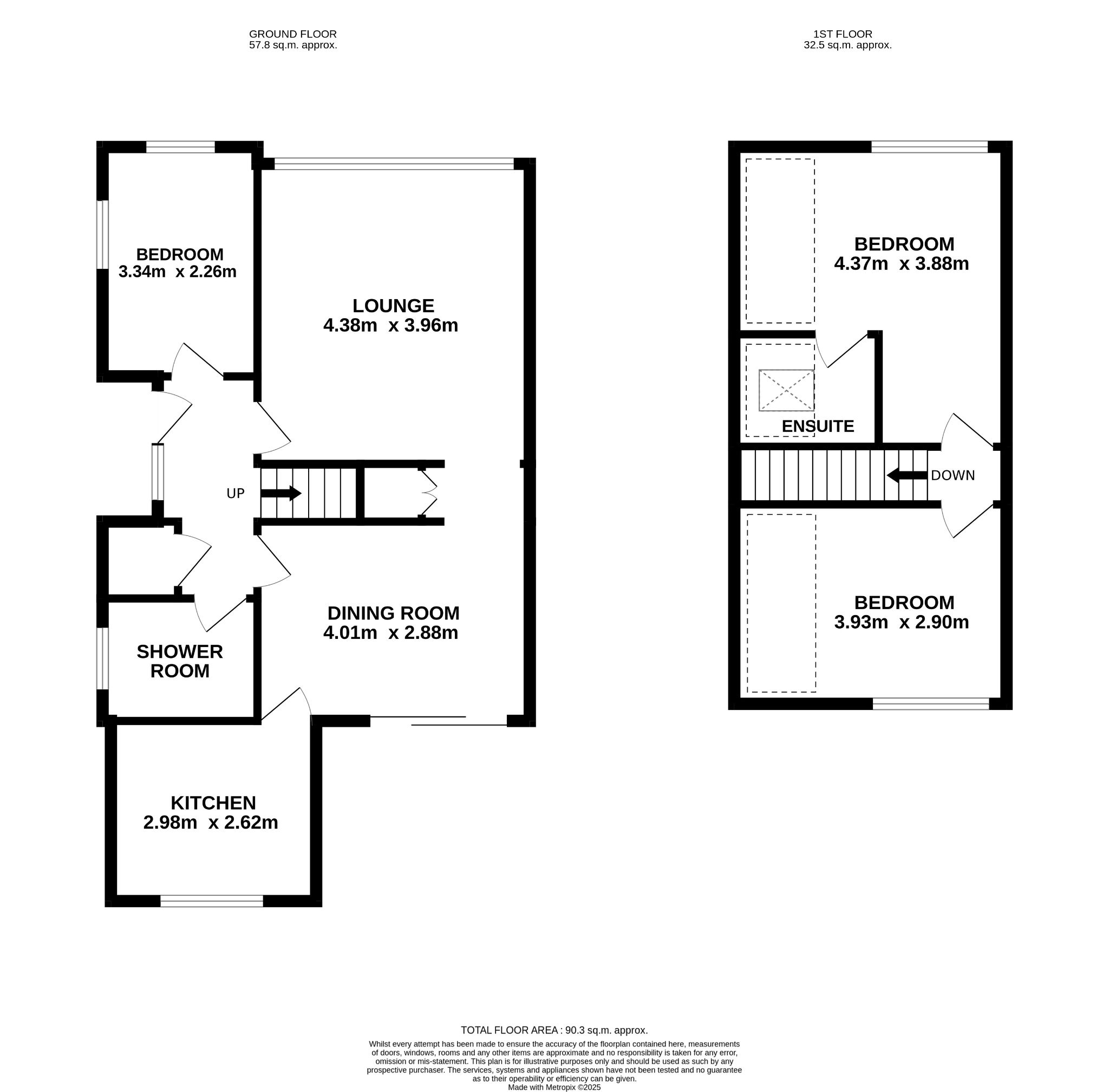 - 1 downstairs bedroom and 2 upstairs double bedrooms
